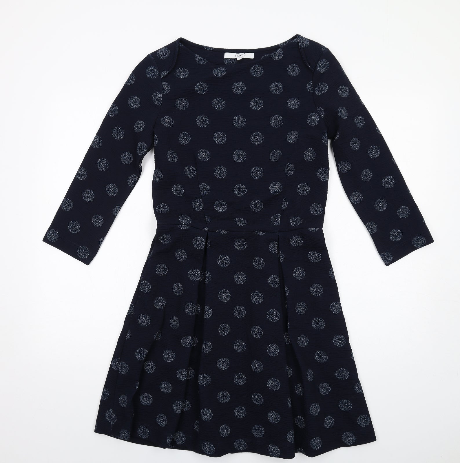 NEXT Womens Blue Polka Dot Polyester A-Line Size 10 Round Neck Pullover