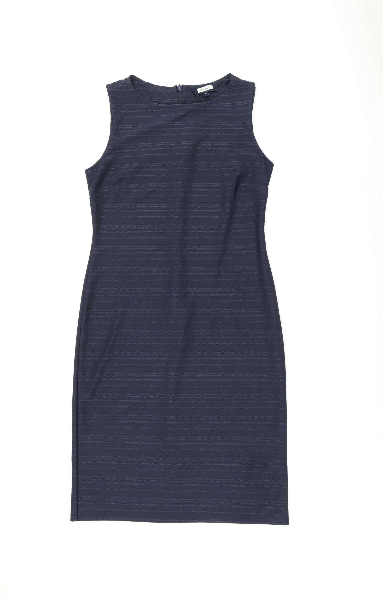 NEXT Womens Blue Polyester Pencil Dress Size 12 Boat Neck Zip