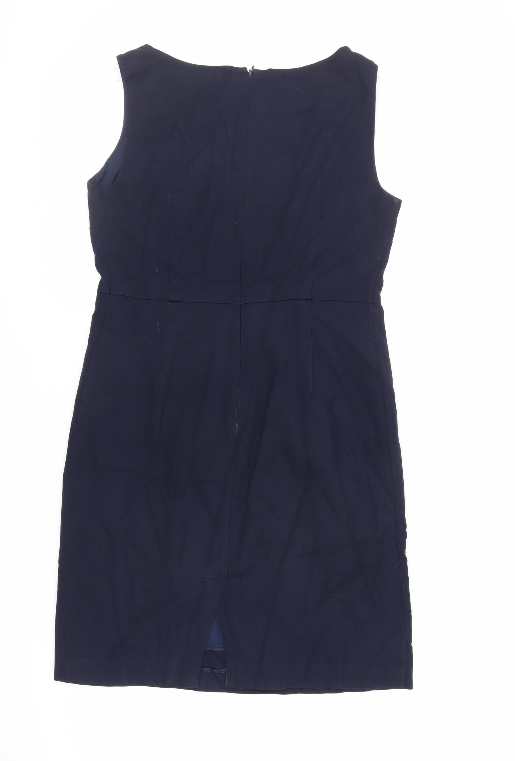 NEXT Womens Blue Polyester Pencil Dress Size 12 Boat Neck Zip