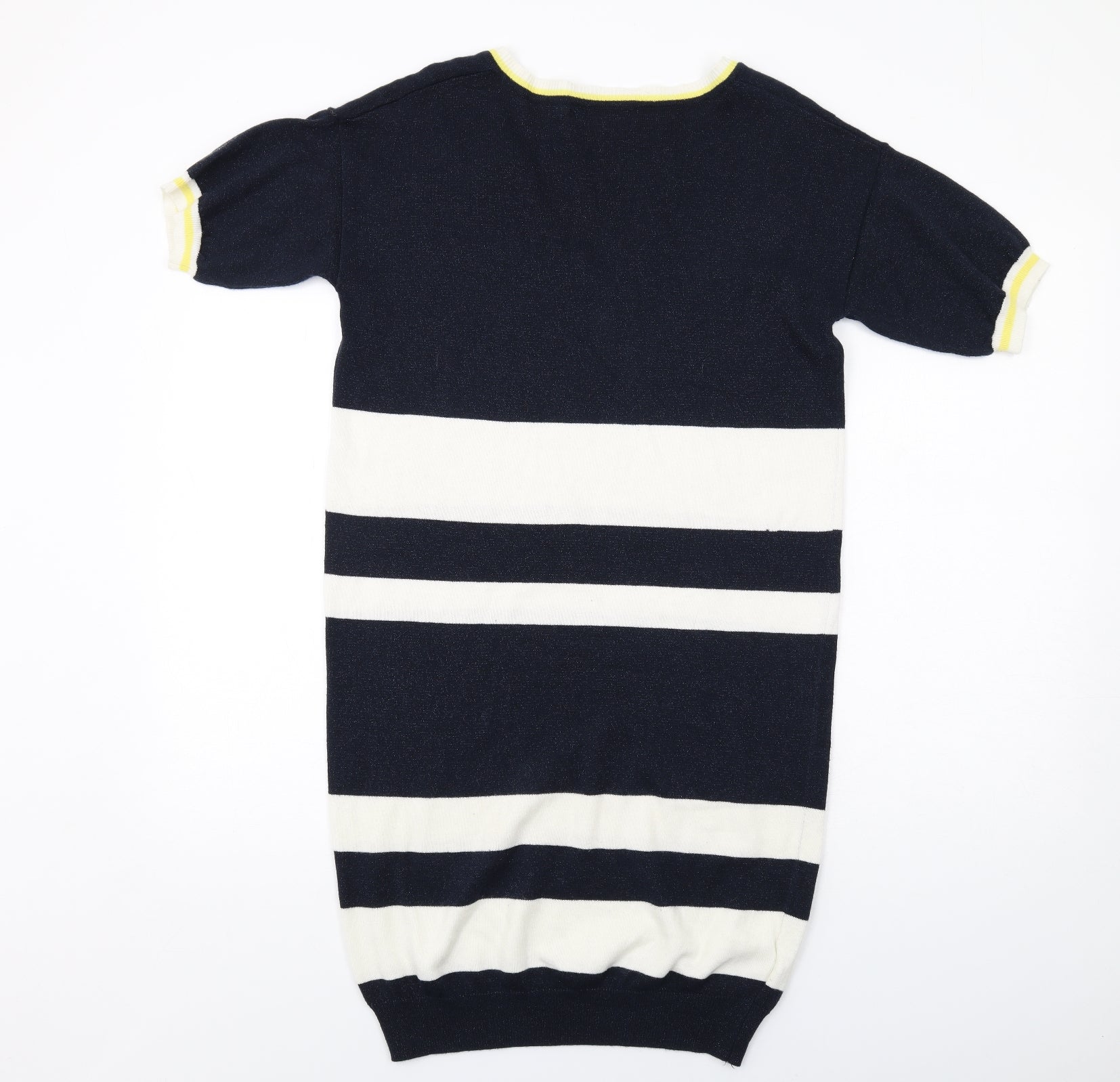 NEXT Womens Blue Striped Cotton Jumper Dress Size 10 V-Neck Pullover