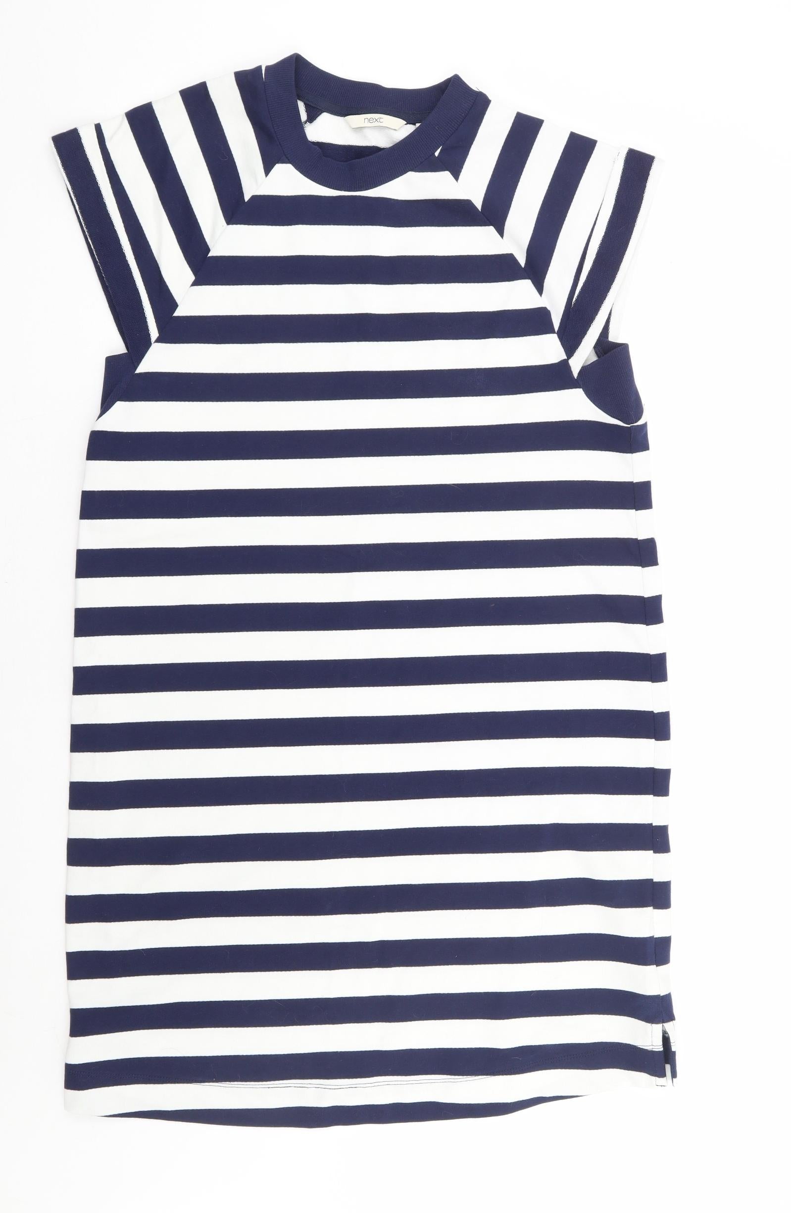 NEXT Womens Blue Striped Cotton Shift Size 12 Round Neck Pullover