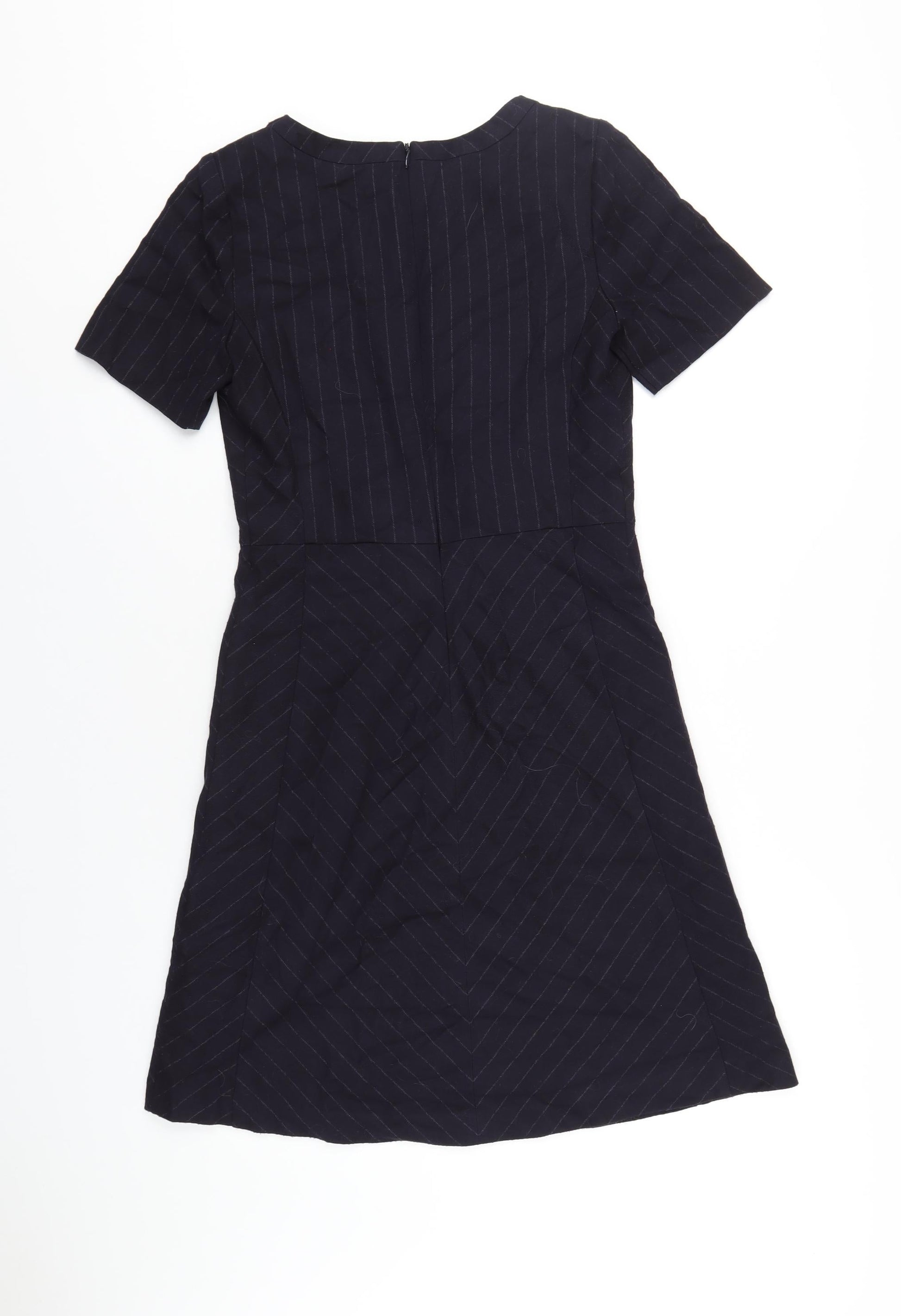 NEXT Womens Blue Striped Polyester A-Line Size 8 Round Neck Zip