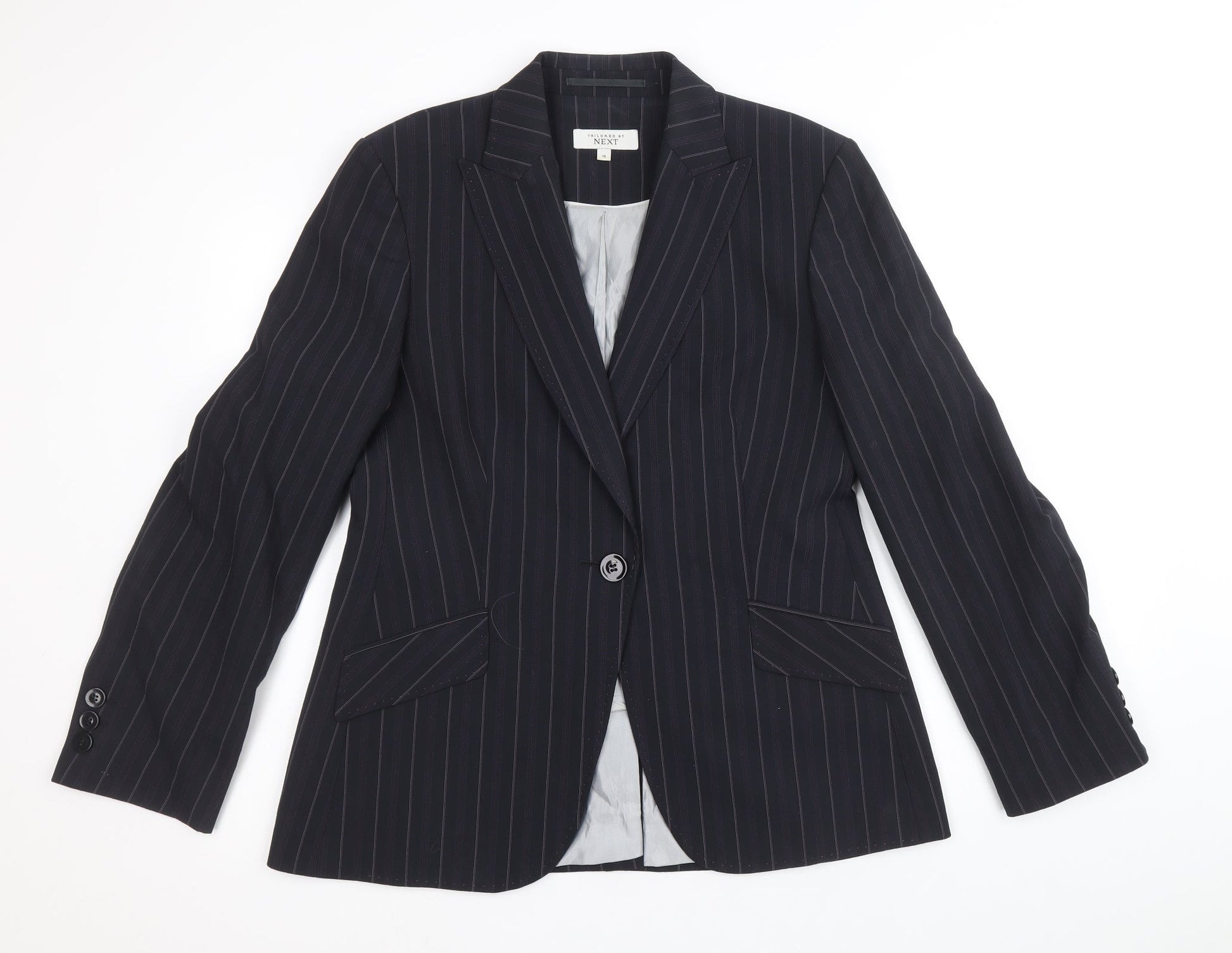 NEXT Womens Blue Striped Polyester Jacket Blazer Size 14