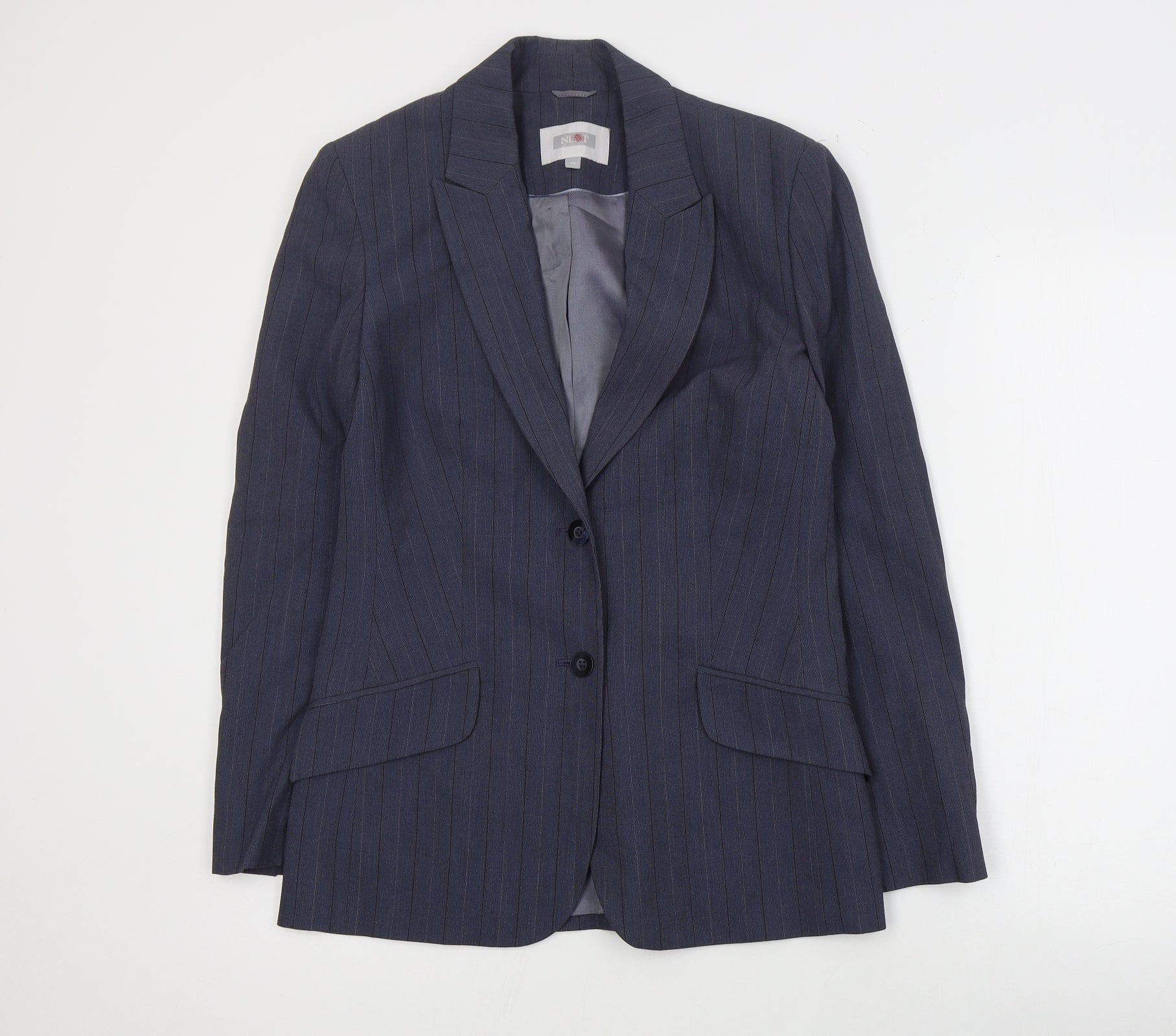 NEXT Womens Blue Striped Polyester Jacket Suit Jacket Size 10