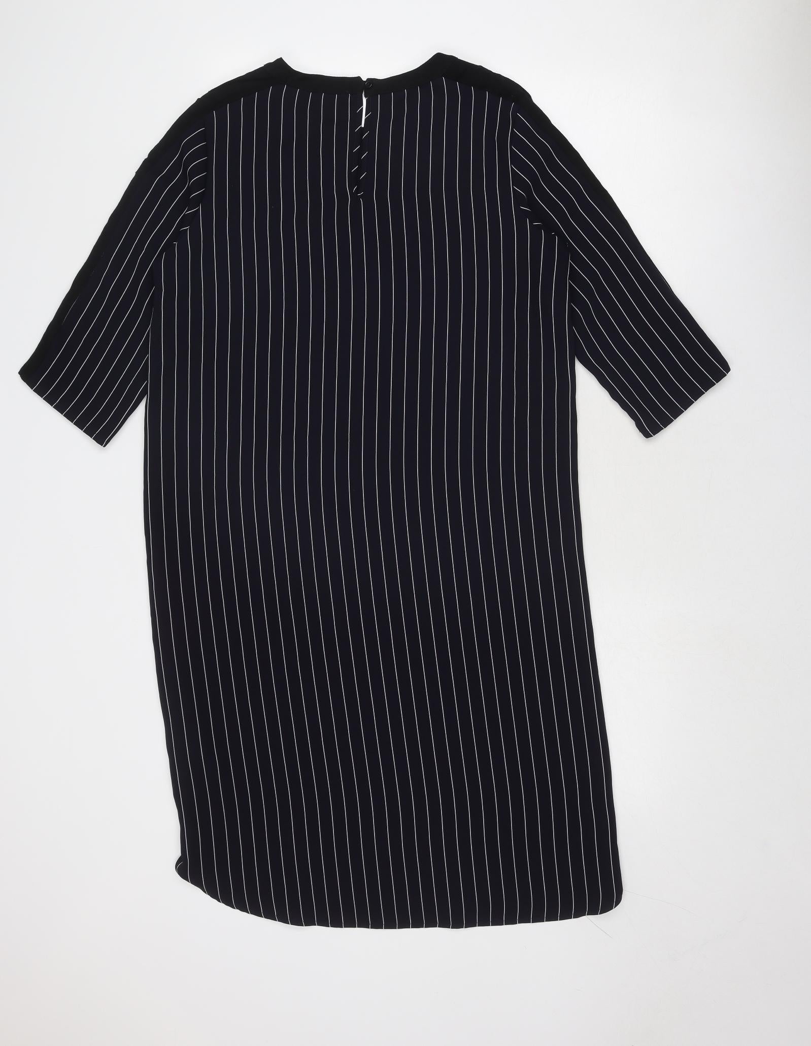 NEXT Womens Blue Striped Polyester Shirt Dress Size 10 Round Neck Button