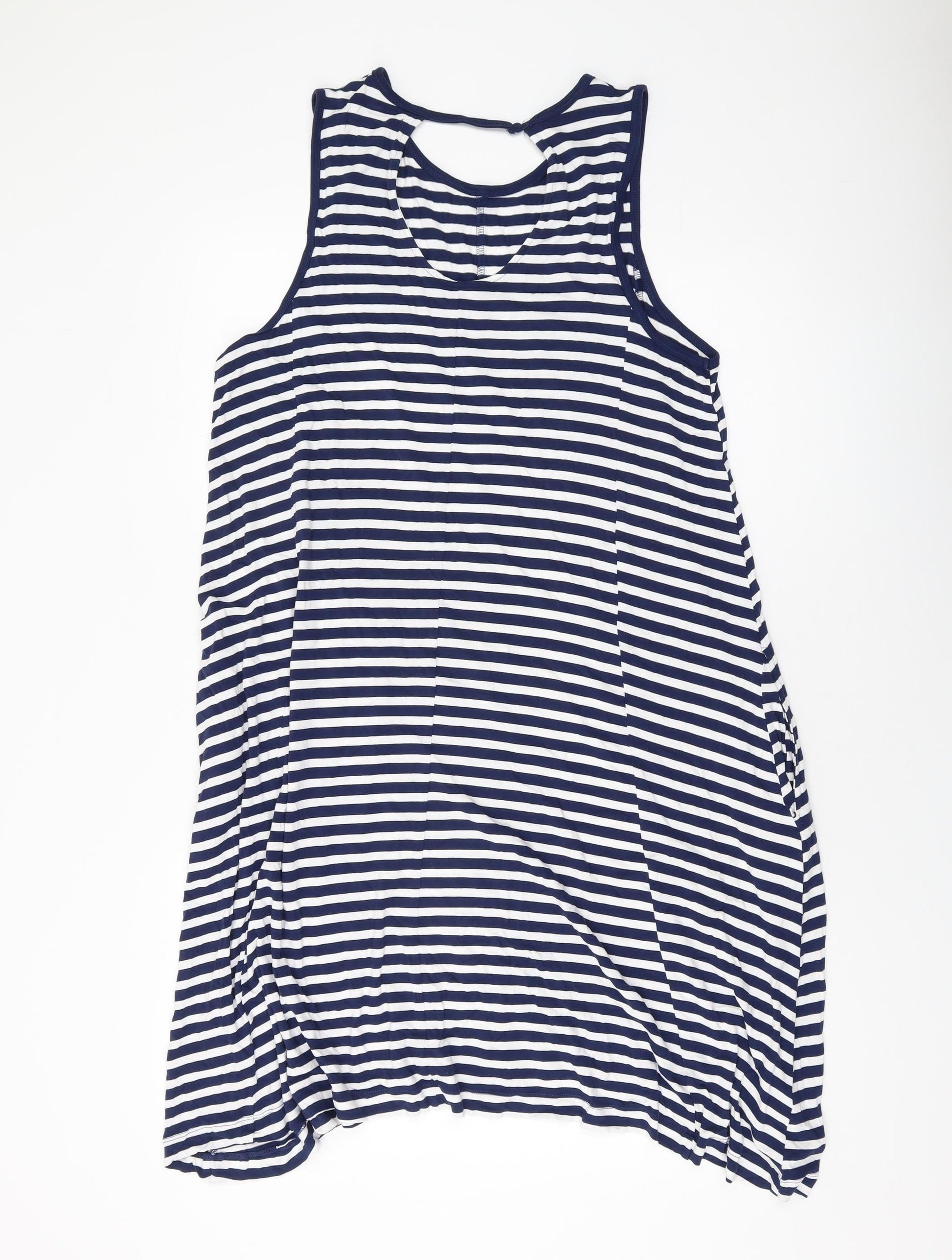 NEXT Womens Blue Striped Viscose A-Line Size L Round Neck Pullover