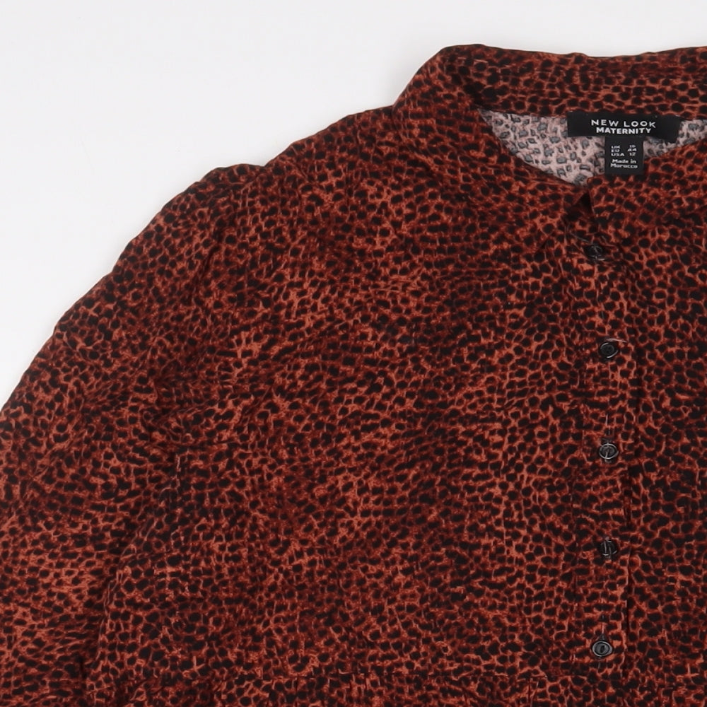NEXT Womens Brown Animal Print Viscose A-Line Size 16 Collared Button