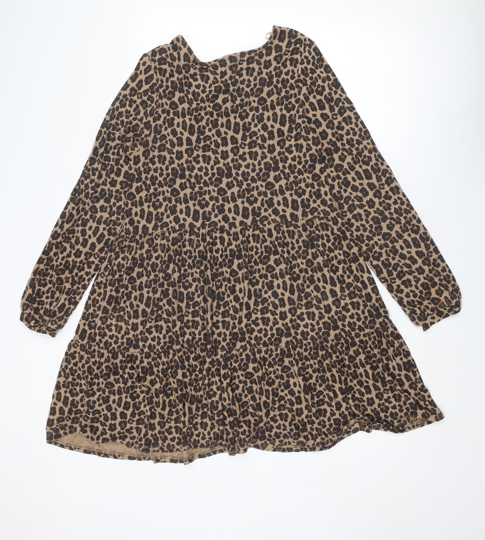 NEXT Womens Brown Animal Print Viscose Skater Dress Size S Round Neck Pullover - Leopard pattern