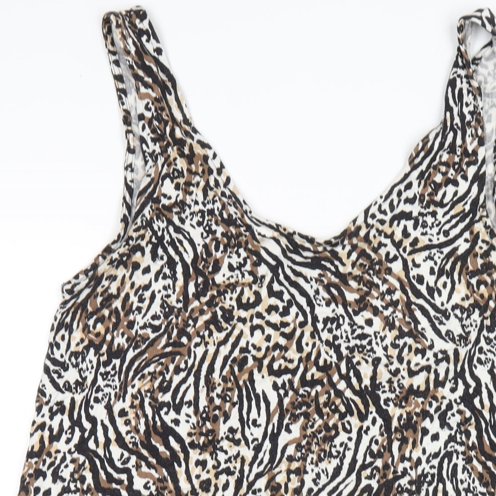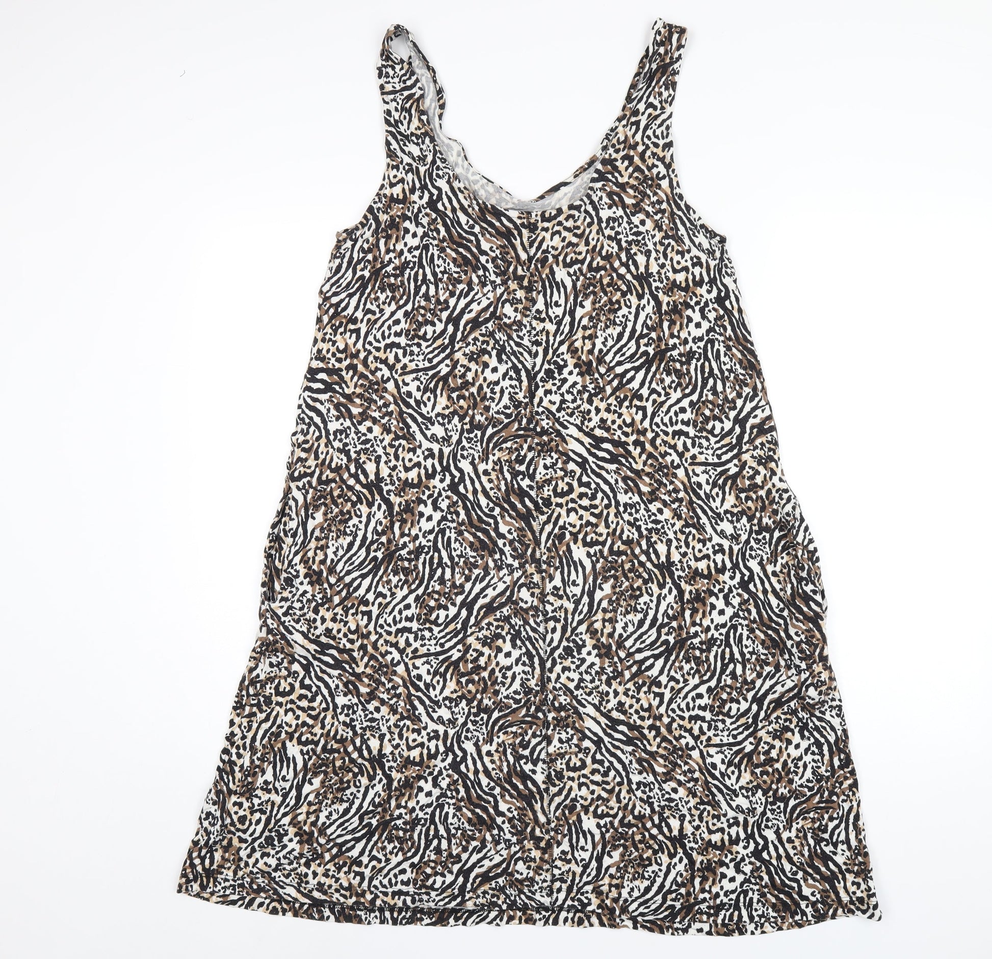 NEXT Womens Brown Animal Print Viscose Tank Dress Size 14 Scoop Neck Pullover