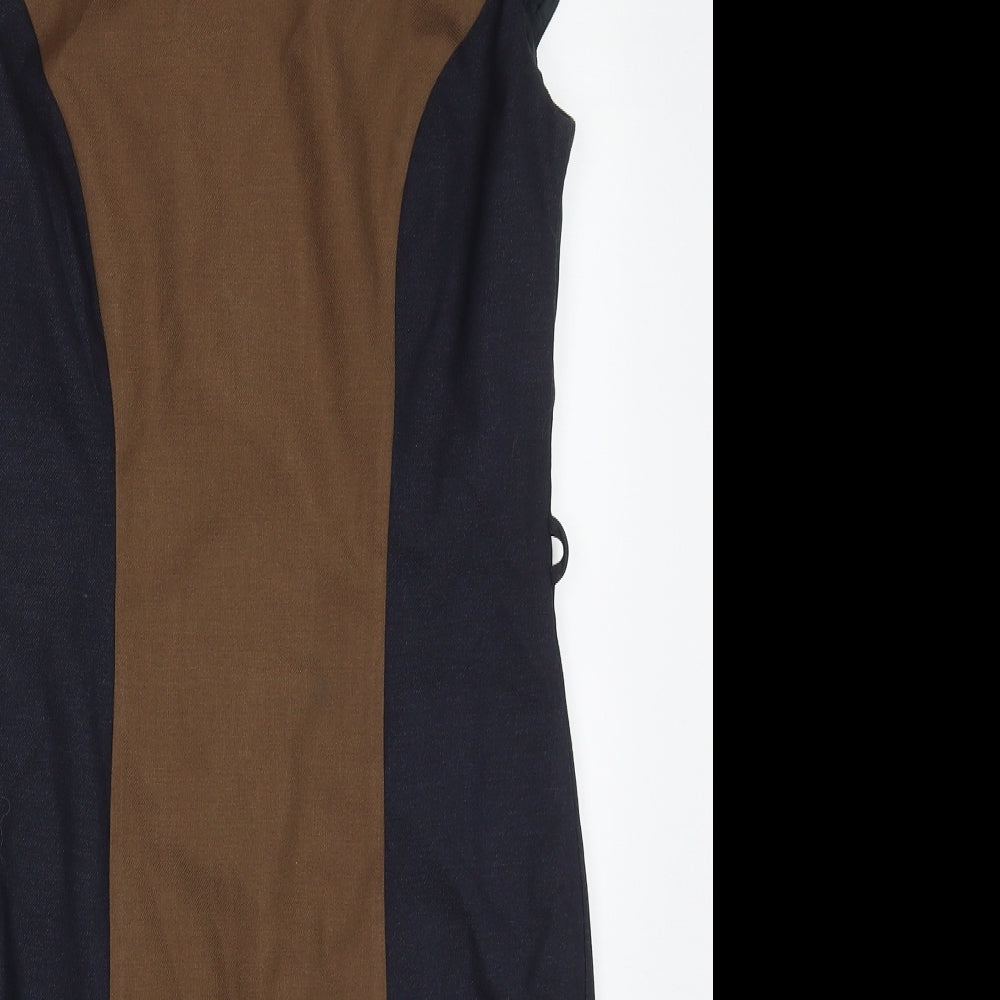 NEXT Womens Brown Colourblock Polyester Pencil Dress Size 10 Off the Shoulder Zip