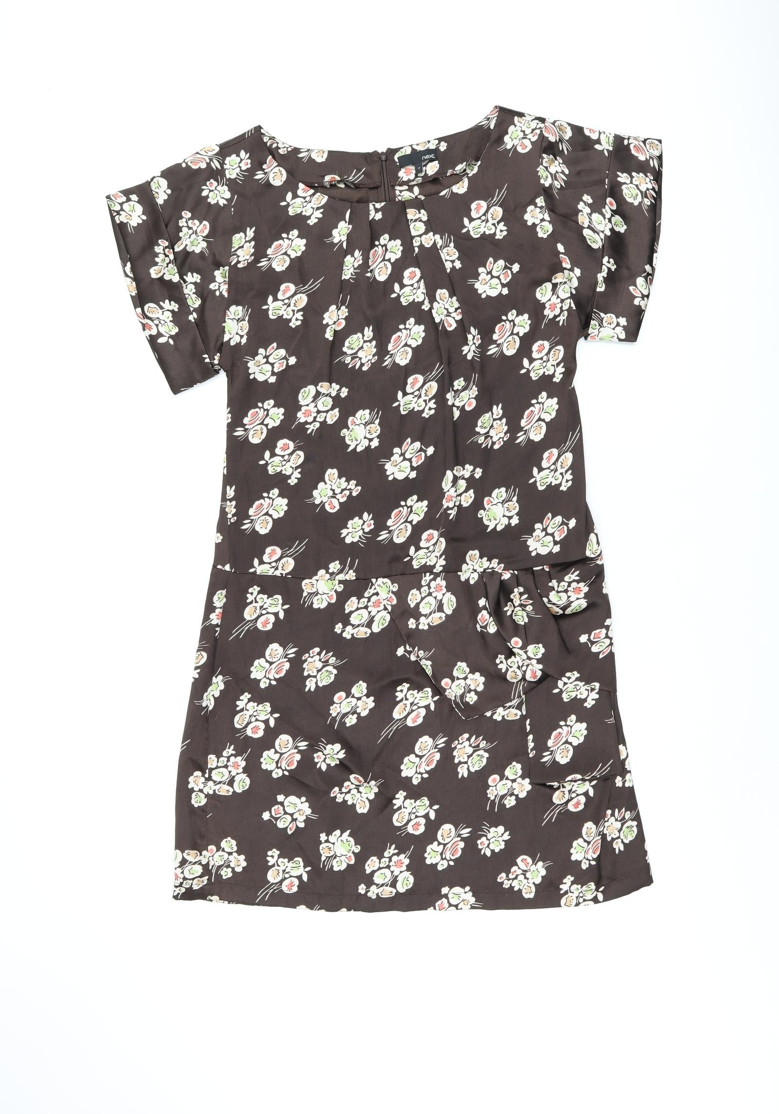 NEXT Womens Brown Floral Polyester Shift Size 12 Boat Neck Zip