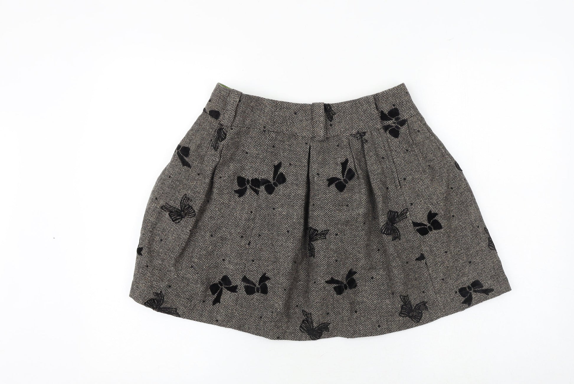 NEXT Womens Brown Geometric Polyester Flare Skirt Size 28 in Zip - Bow Pattern