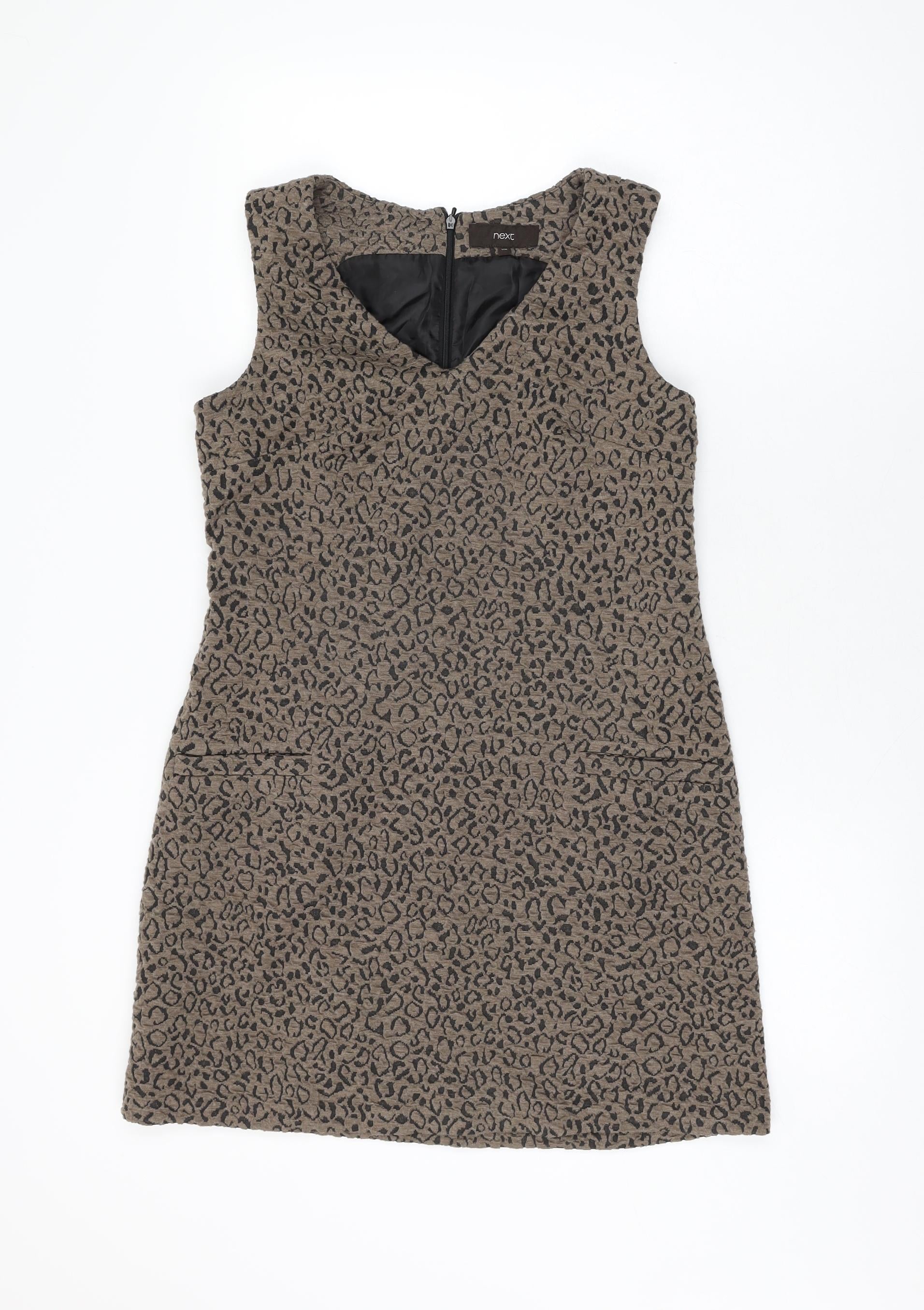 NEXT Womens Brown Geometric Polyester Shift Size 10 V-Neck Zip