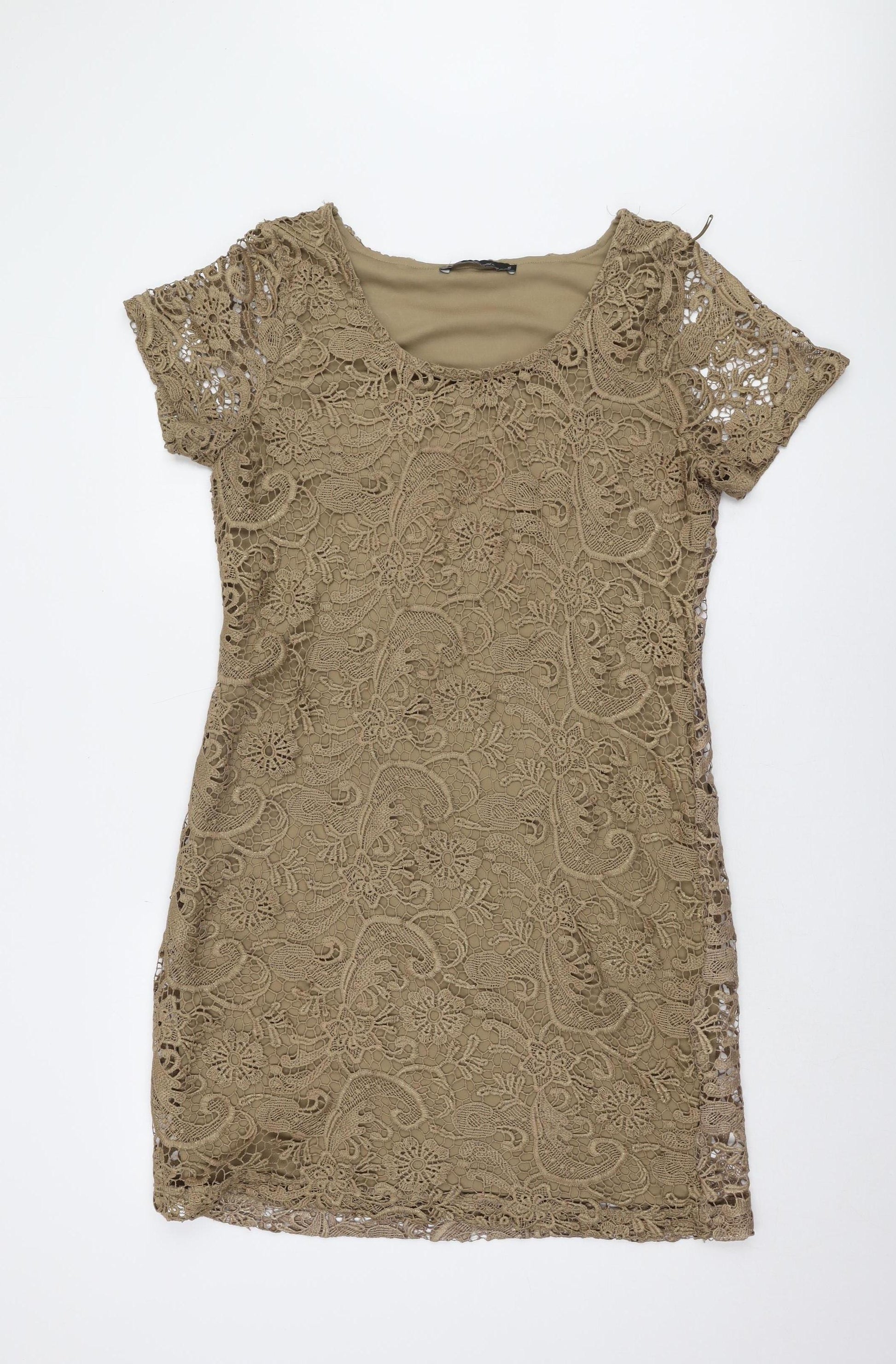 Next Women's Brown Lace Short Sleeve Dress - Size 16