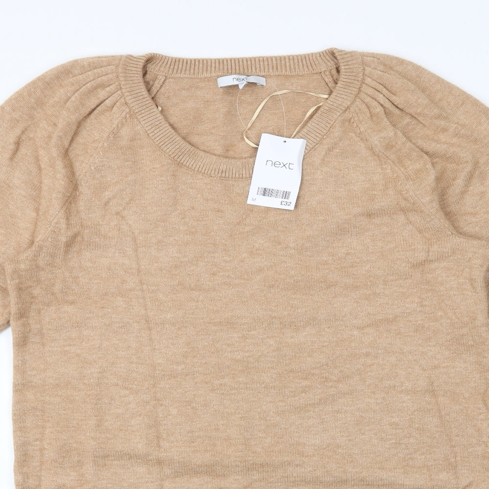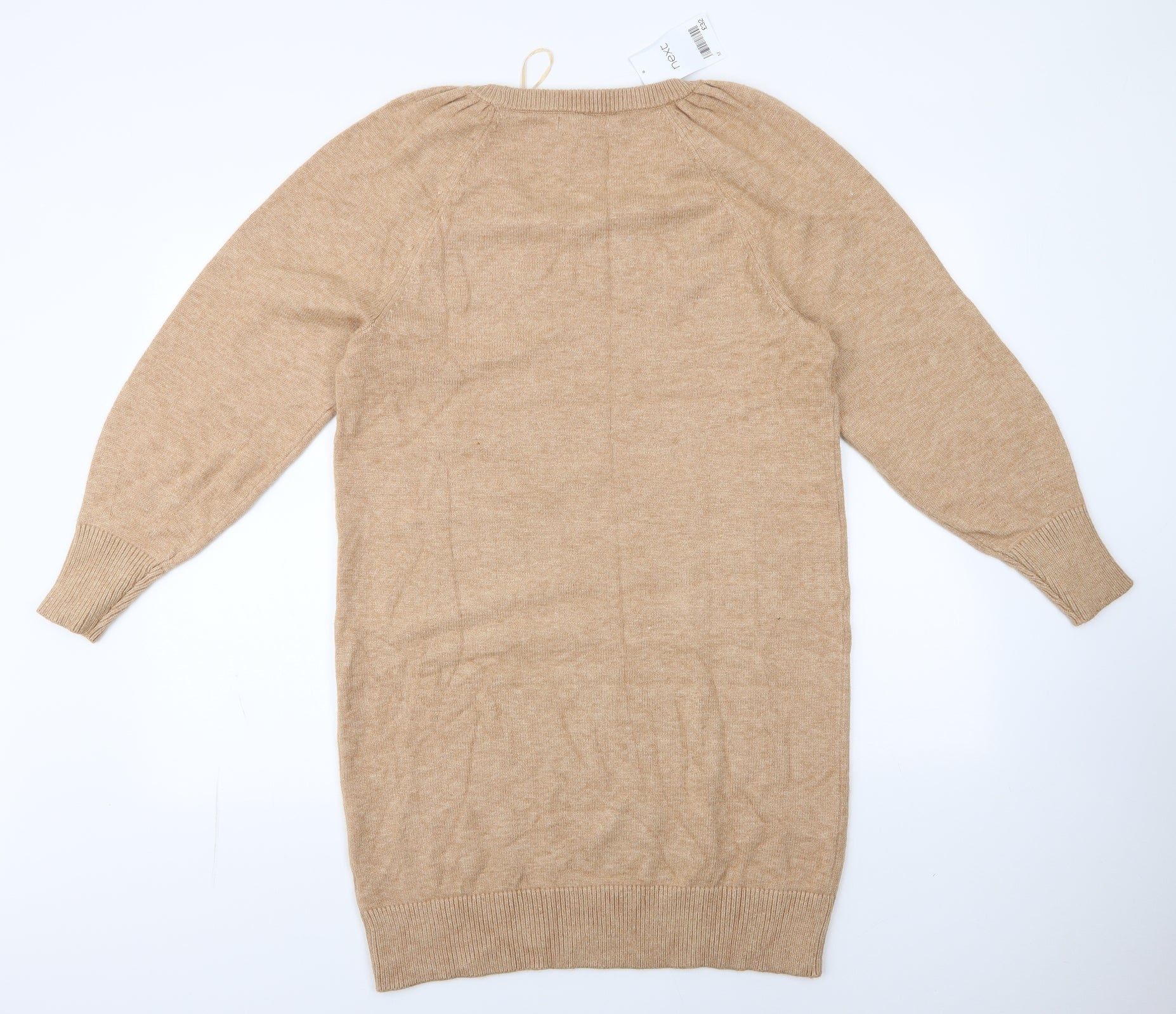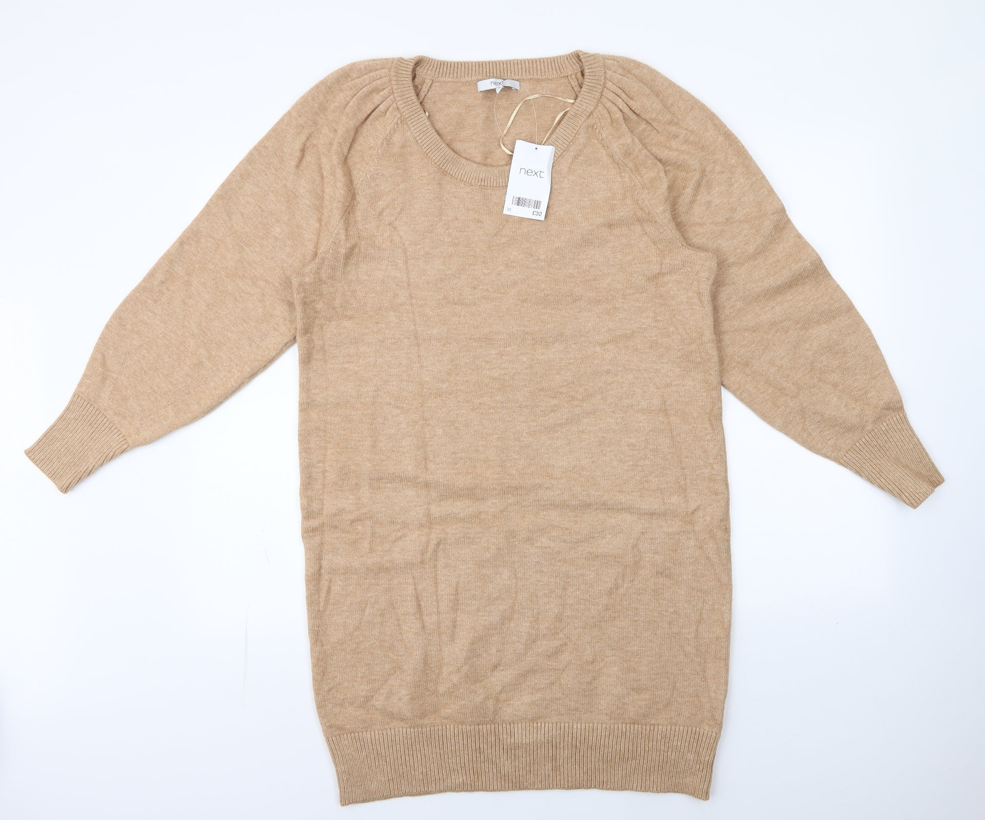 NEXT Womens Brown Viscose Jacket Dress Size M Round Neck Pullover - ruched shoulder