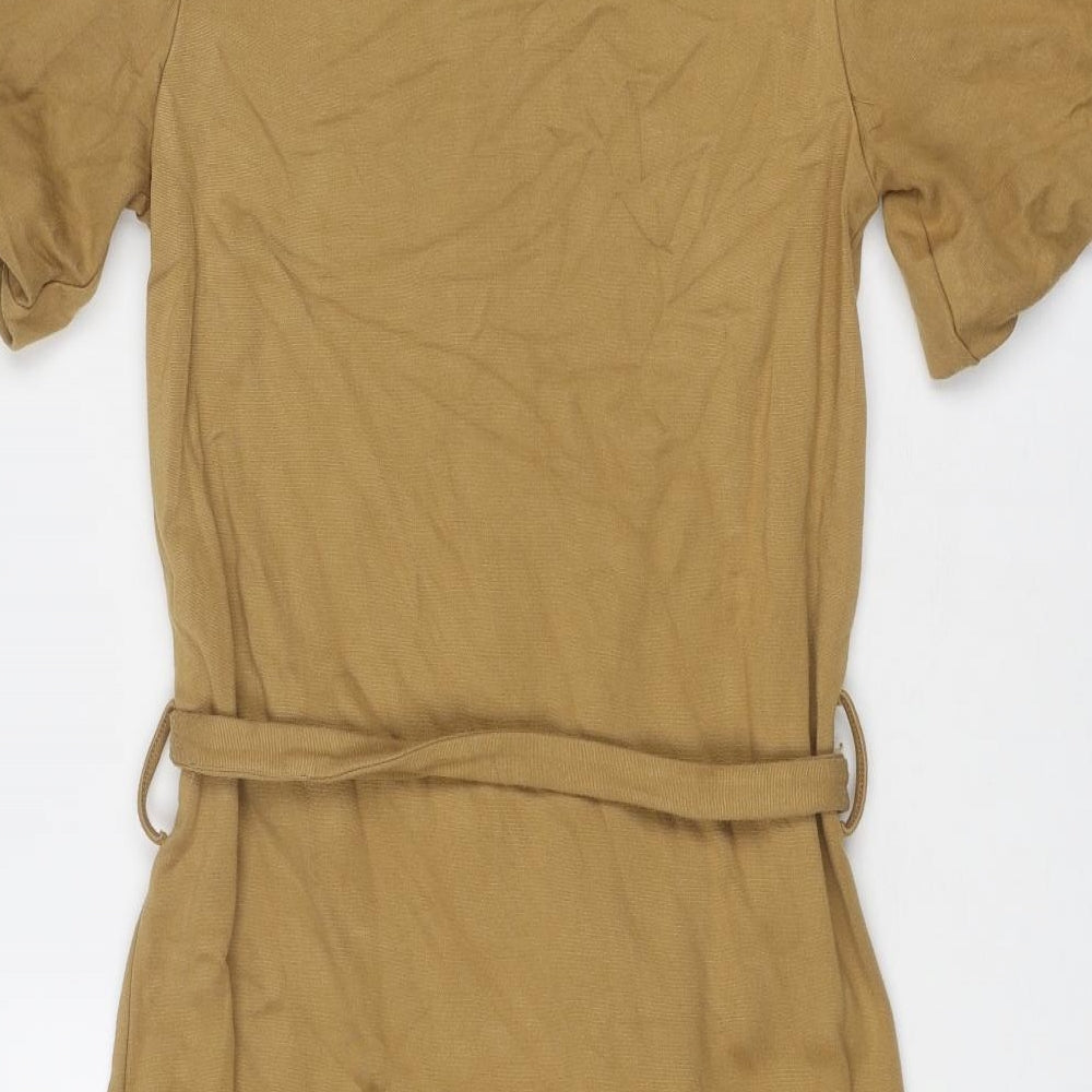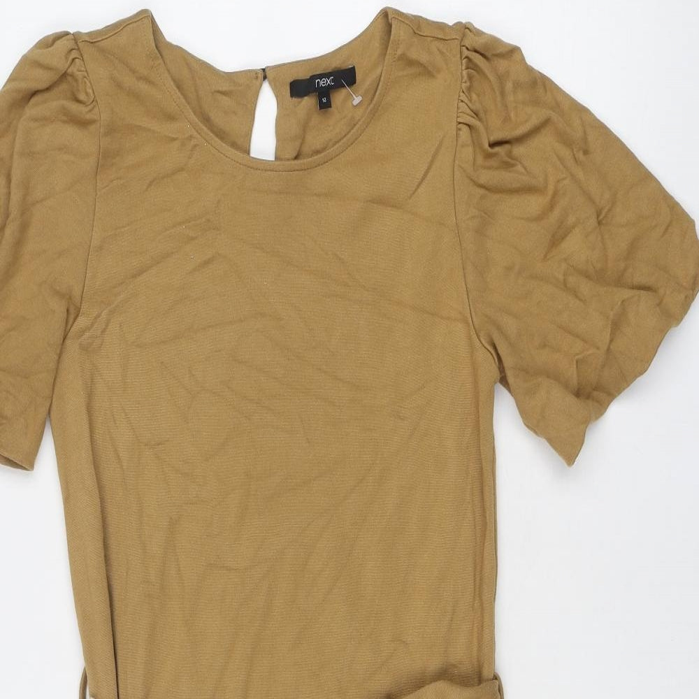 NEXT Womens Brown Viscose Skater Dress Size 12 Round Neck Button