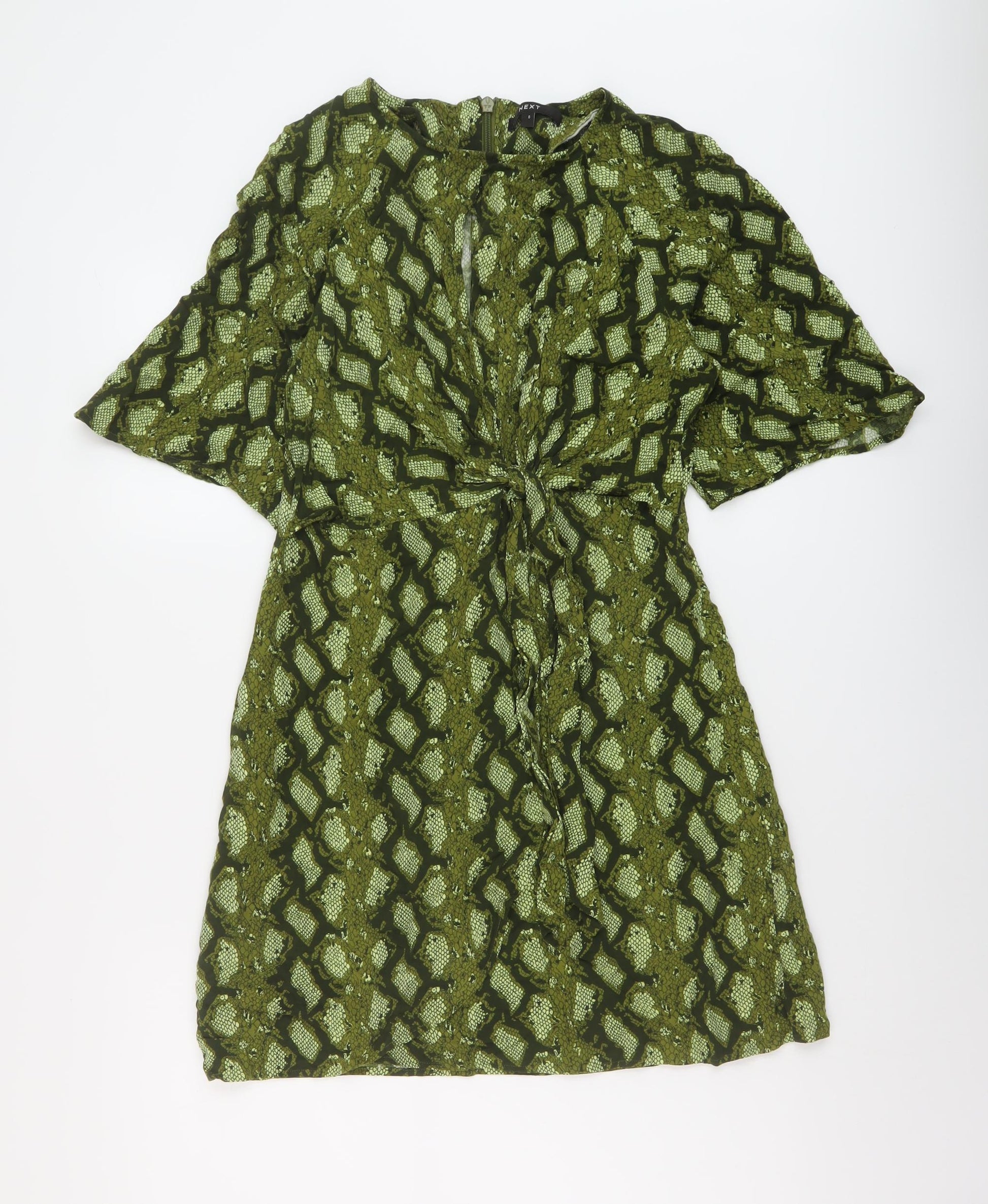NEXT Womens Green Animal Print Viscose A-Line Size 8 Round Neck Zip