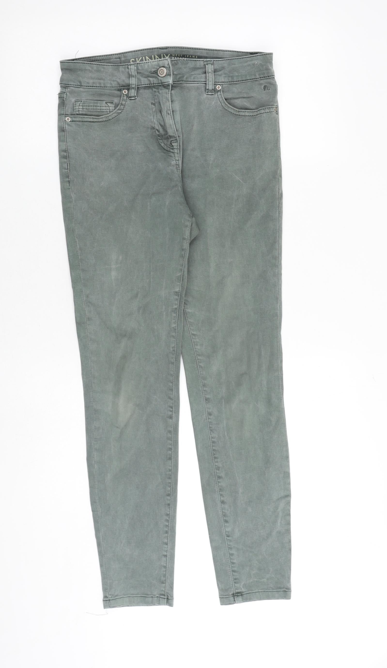 NEXT Womens Green Cotton Tapered Jeans Size 8 Slim Zip