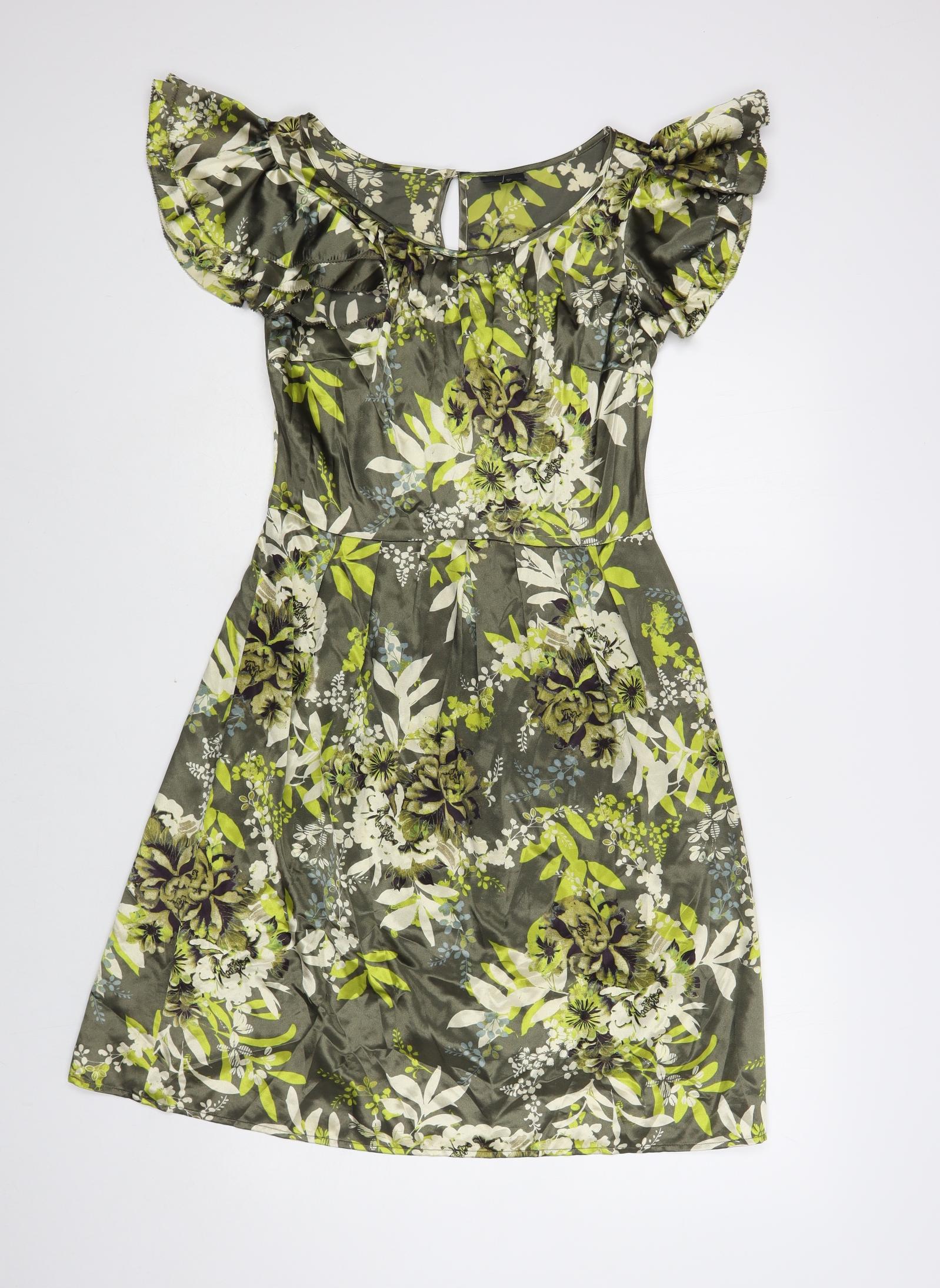 NEXT Womens Green Floral Polyester A-Line Size 6 Boat Neck Button