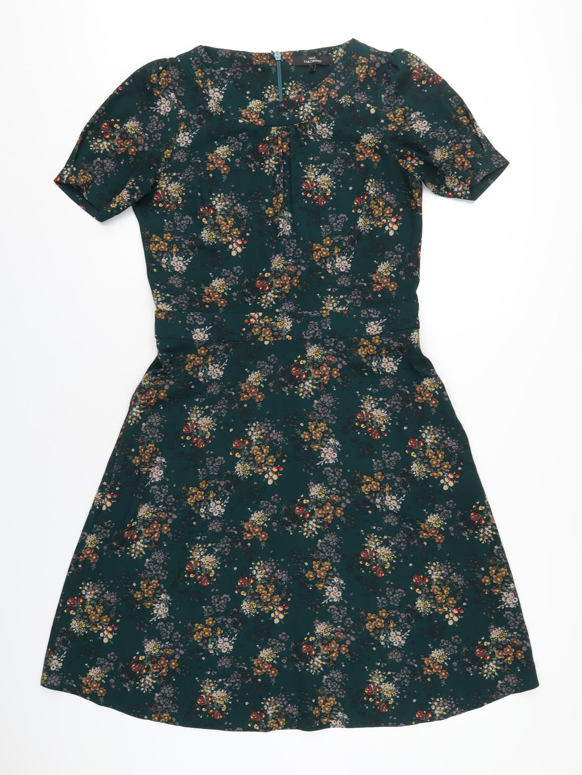 NEXT Womens Green Floral Polyester A-Line Size 8 Round Neck Zip