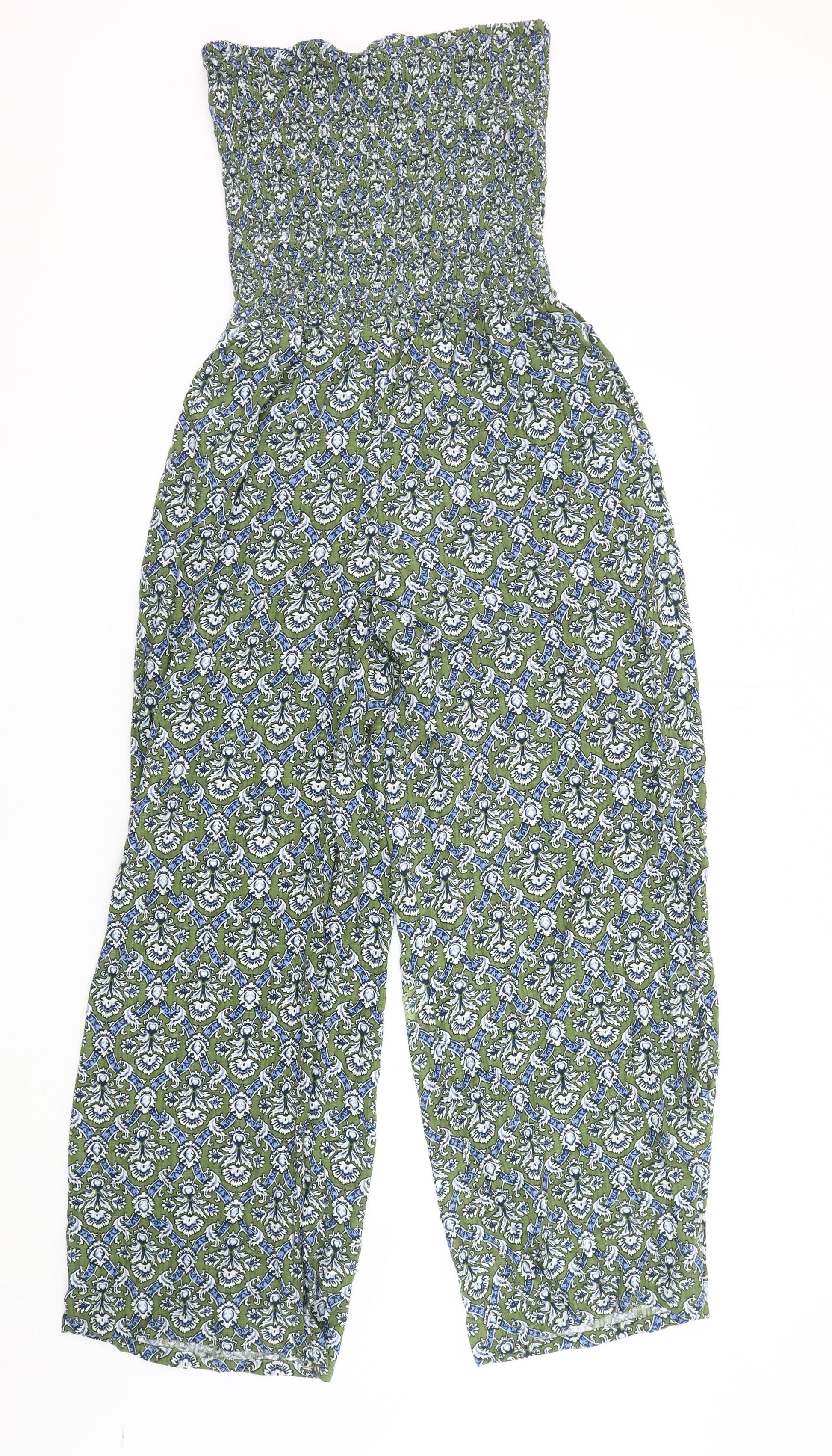Next Women's Green Floral Strapless Jumpsuit Size 10