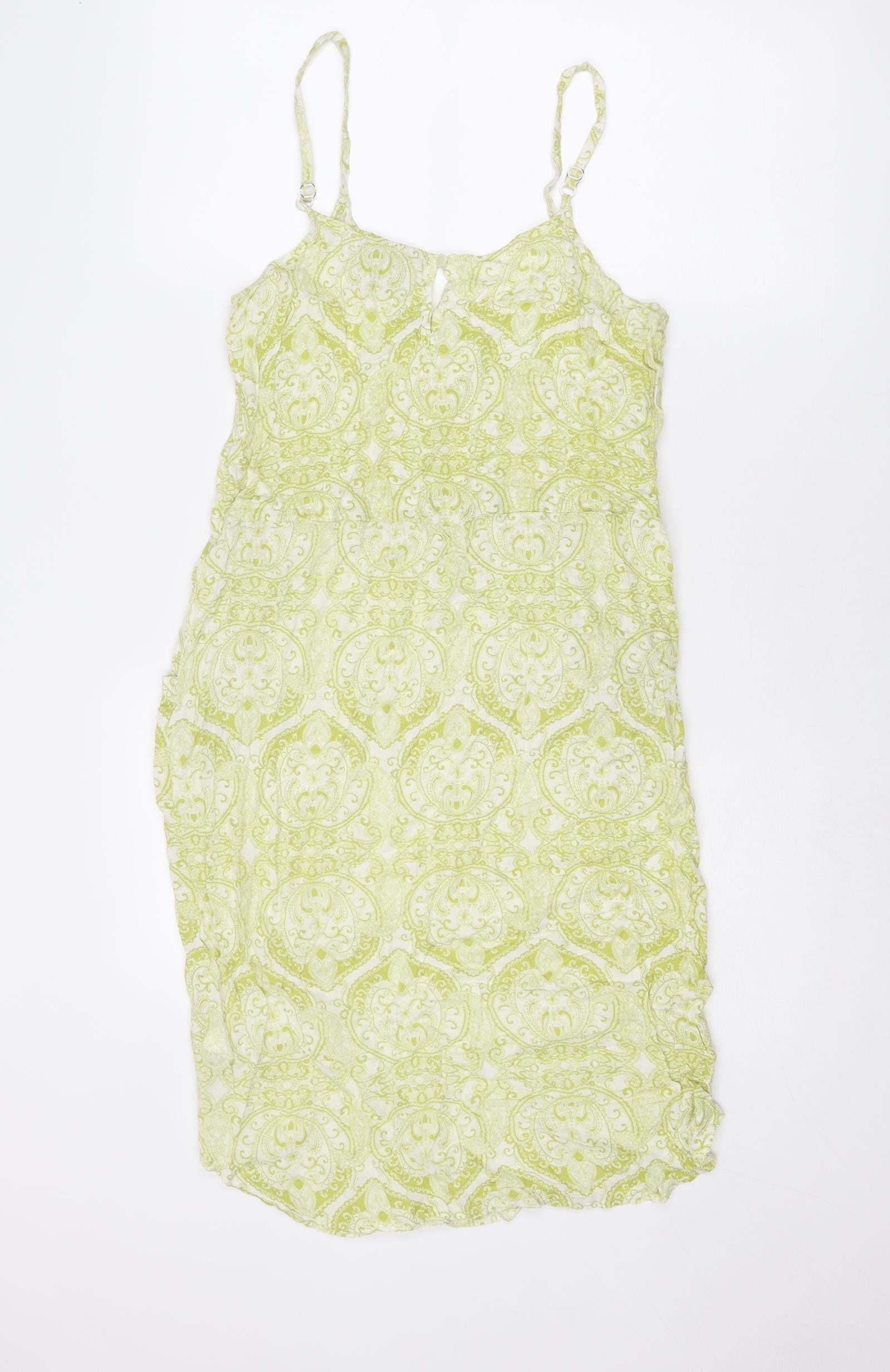 NEXT Womens Green Geometric Viscose Slip Dress Size 8 V-Neck Pullover