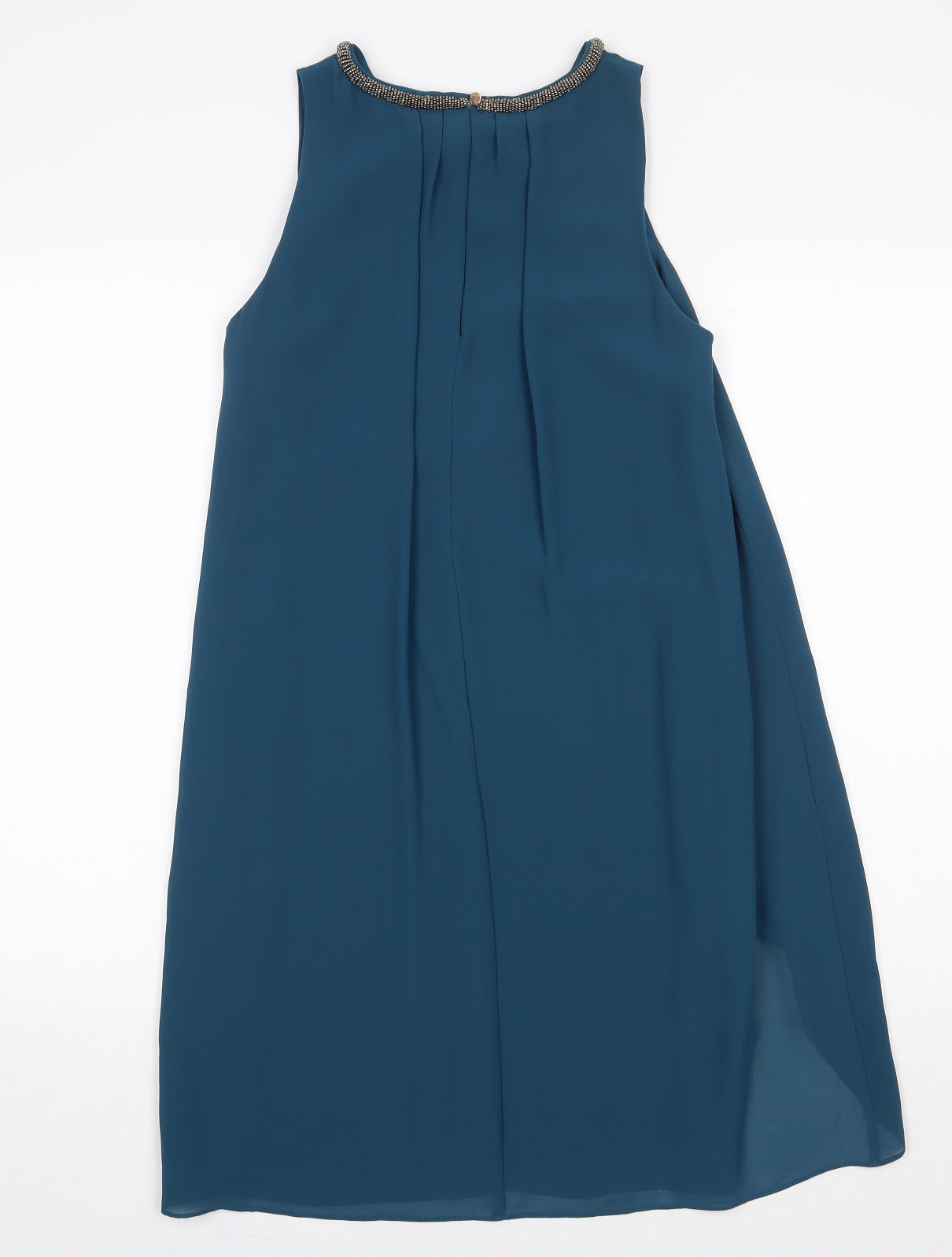 NEXT Womens Green Polyester Shift Size 10 Round Neck Button