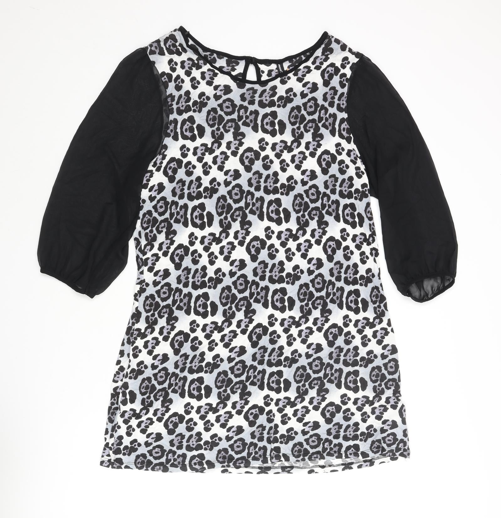 NEXT Womens Grey Animal Print Polyester Shift Size 20 Round Neck Button - Leopard Print