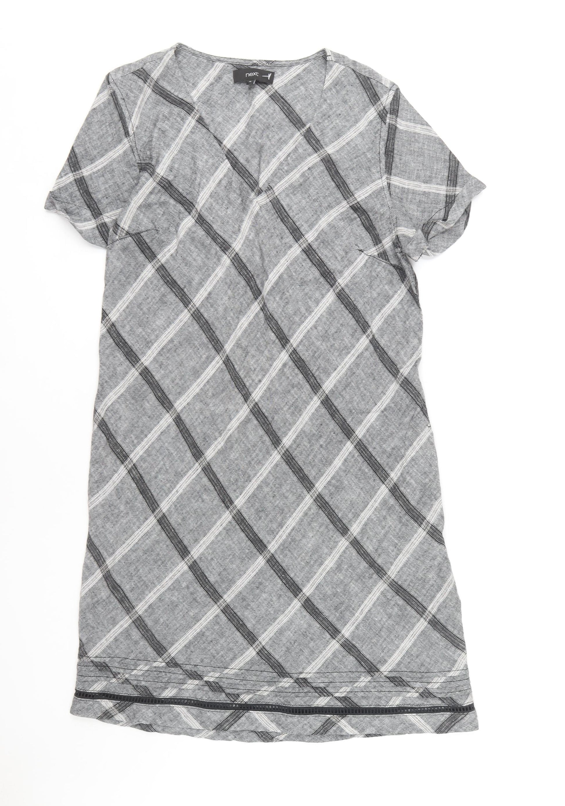 Next Women's Grey Check V-Neck Dress, Size 14