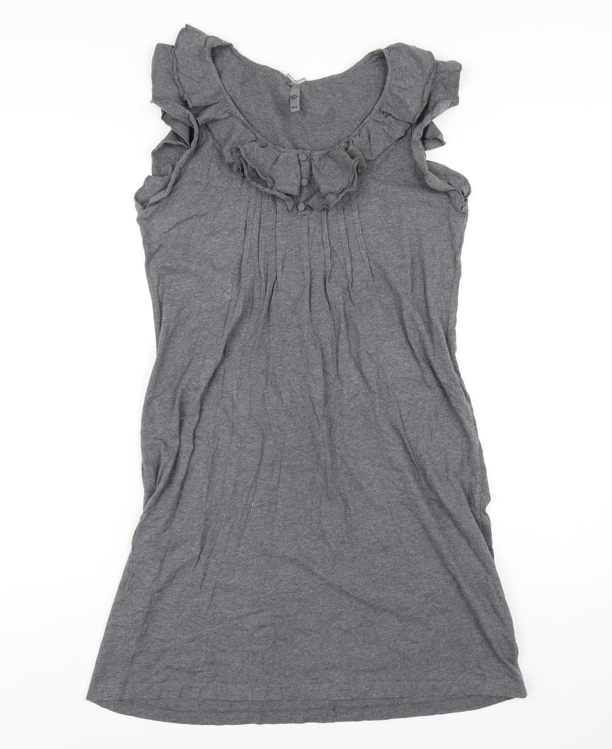 NEXT Womens Grey Cotton A-Line Size 12 Scoop Neck Pullover - Ruffle Neckline