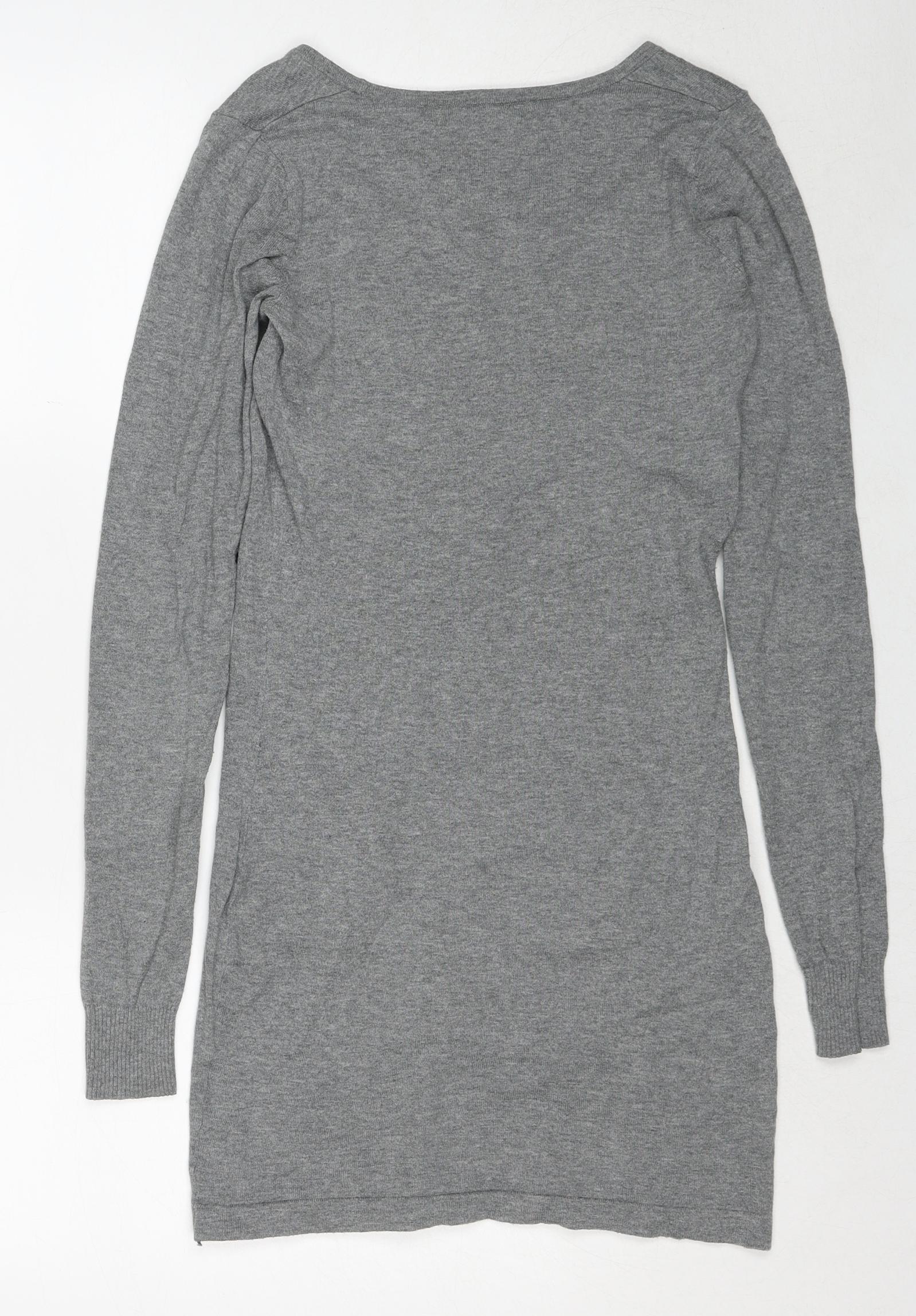 NEXT Womens Grey Cotton Jumper Dress Size 6 Boat Neck Pullover - Crocheted Lace Detail