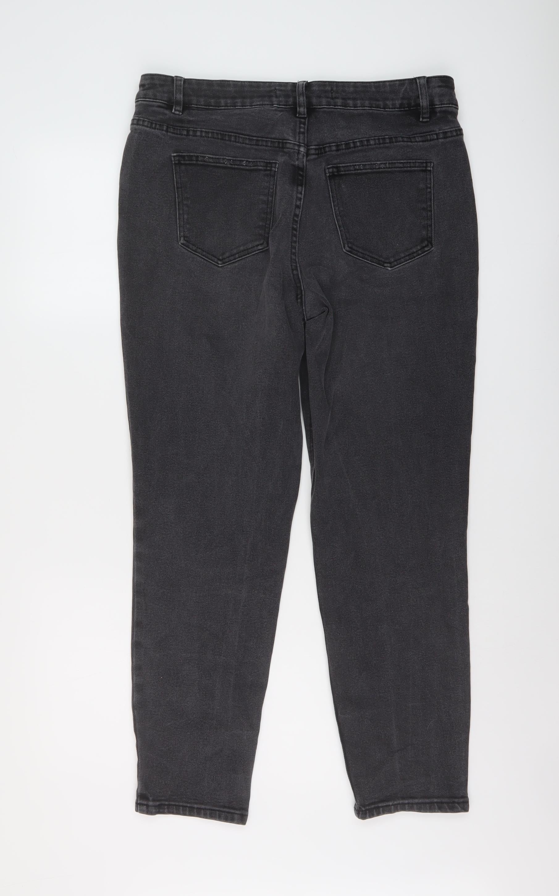 NEXT Womens Grey Cotton Mom Jeans Size 14 L28 in Regular Button