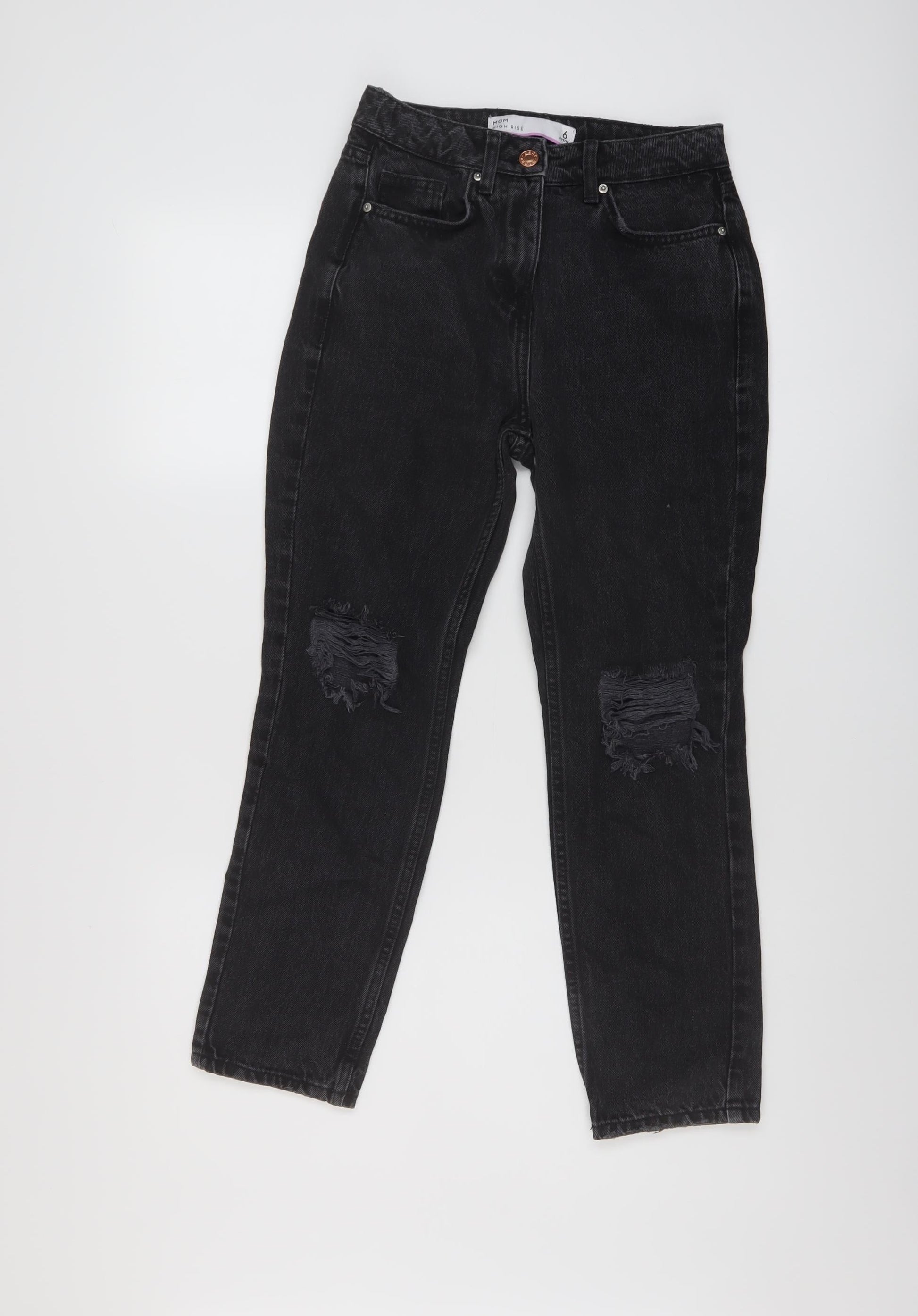 NEXT Womens Grey Cotton Mom Jeans Size 6 L25 in Regular Button