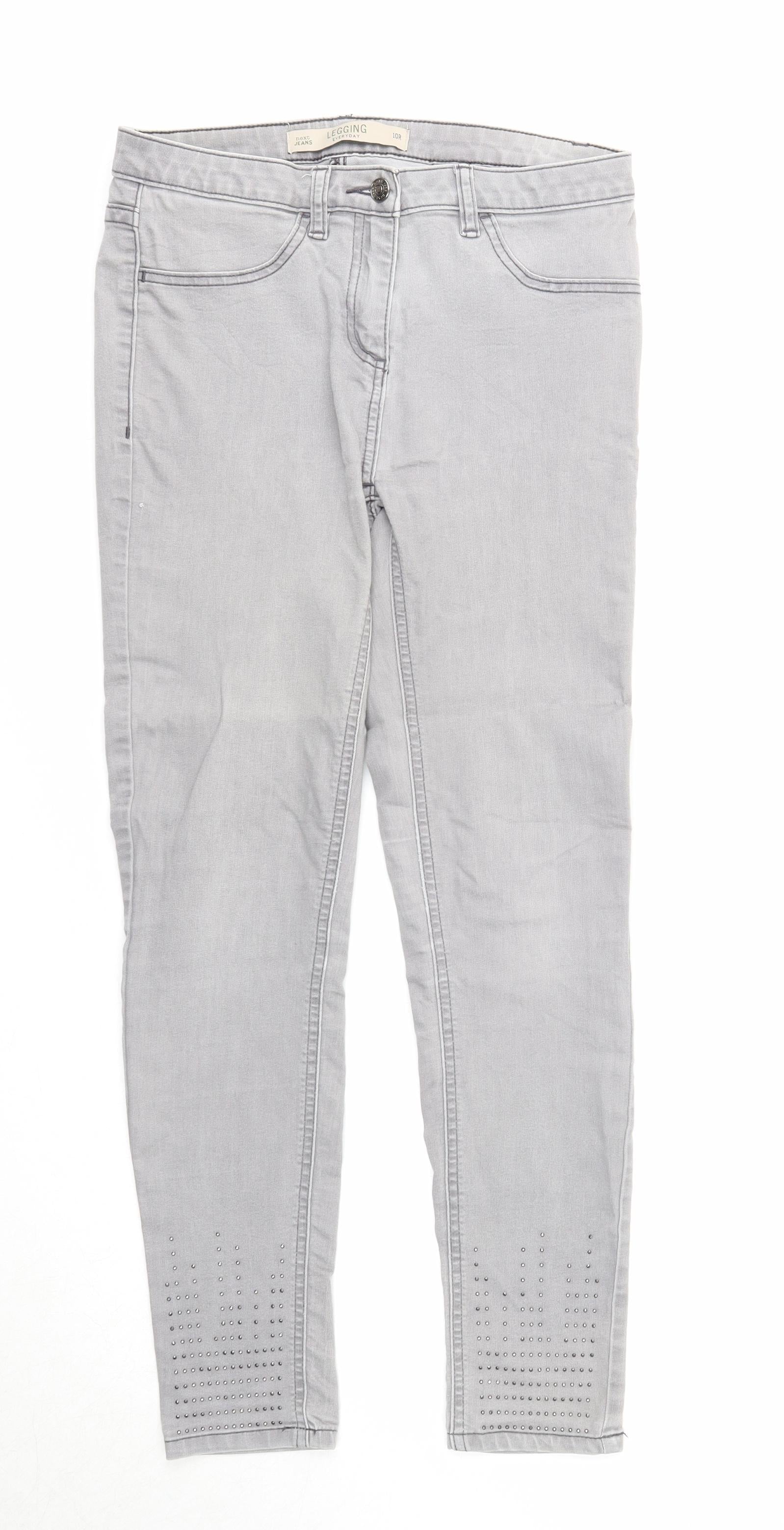 NEXT Womens Grey Cotton Skinny Jeans Size 10 Regular Zip