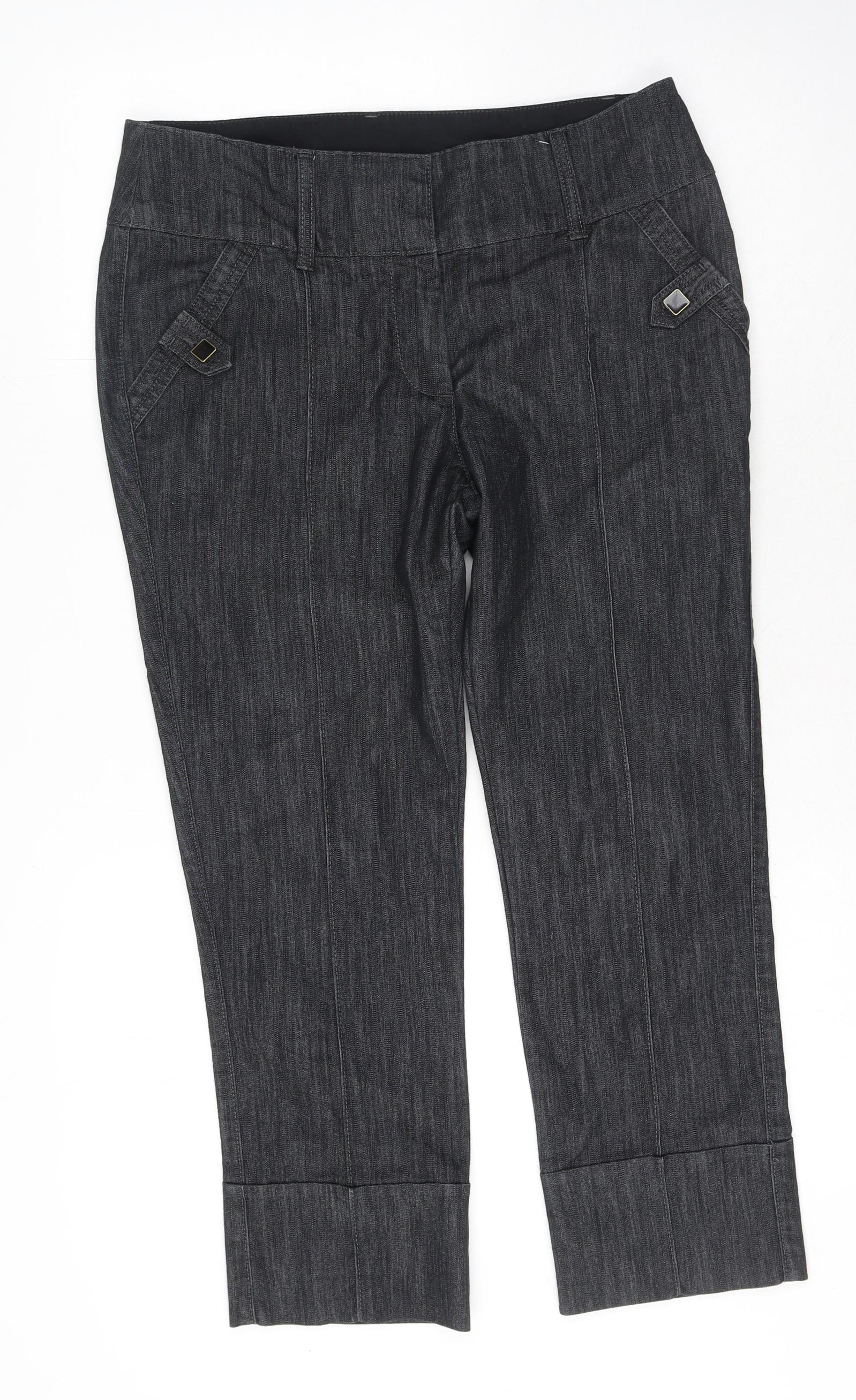 NEXT Womens Grey Cotton Straight Jeans Size 12 L25 in Regular Hook & Eye