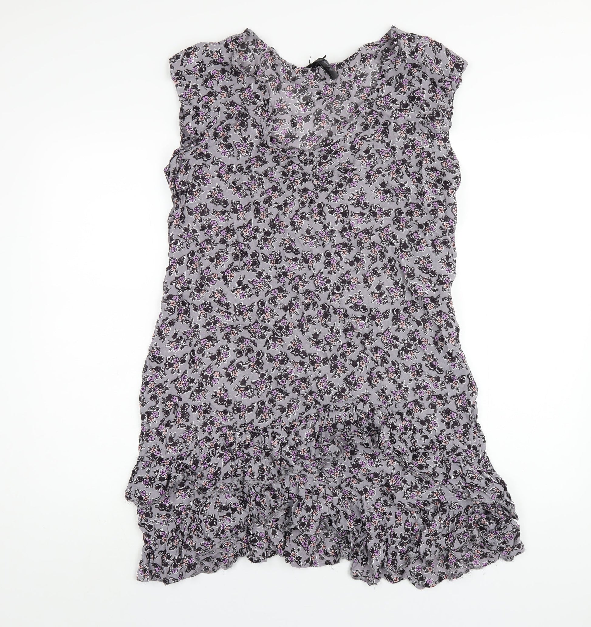 NEXT Womens Grey Floral Viscose Ball Gown Size 16 V-Neck Pullover