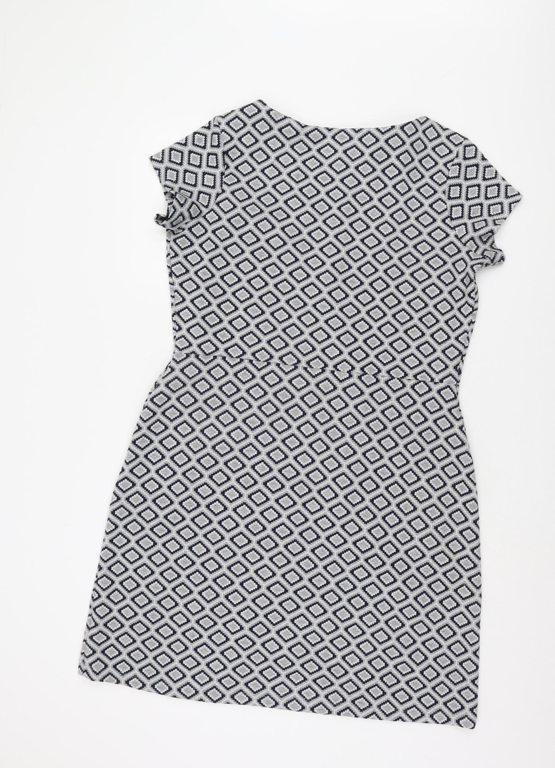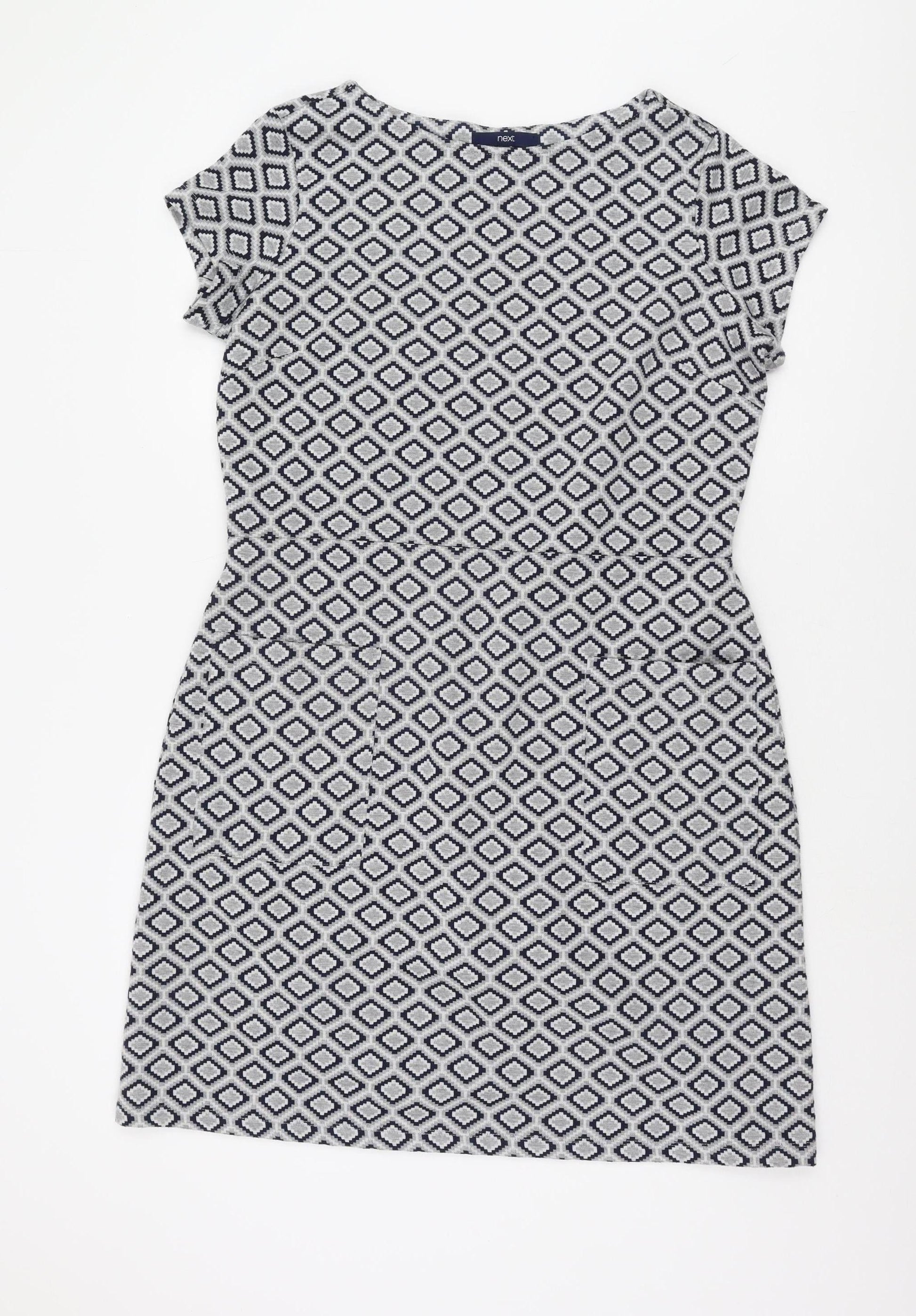 Next Women's Grey Geometric Shift Dress Size 16 Casual