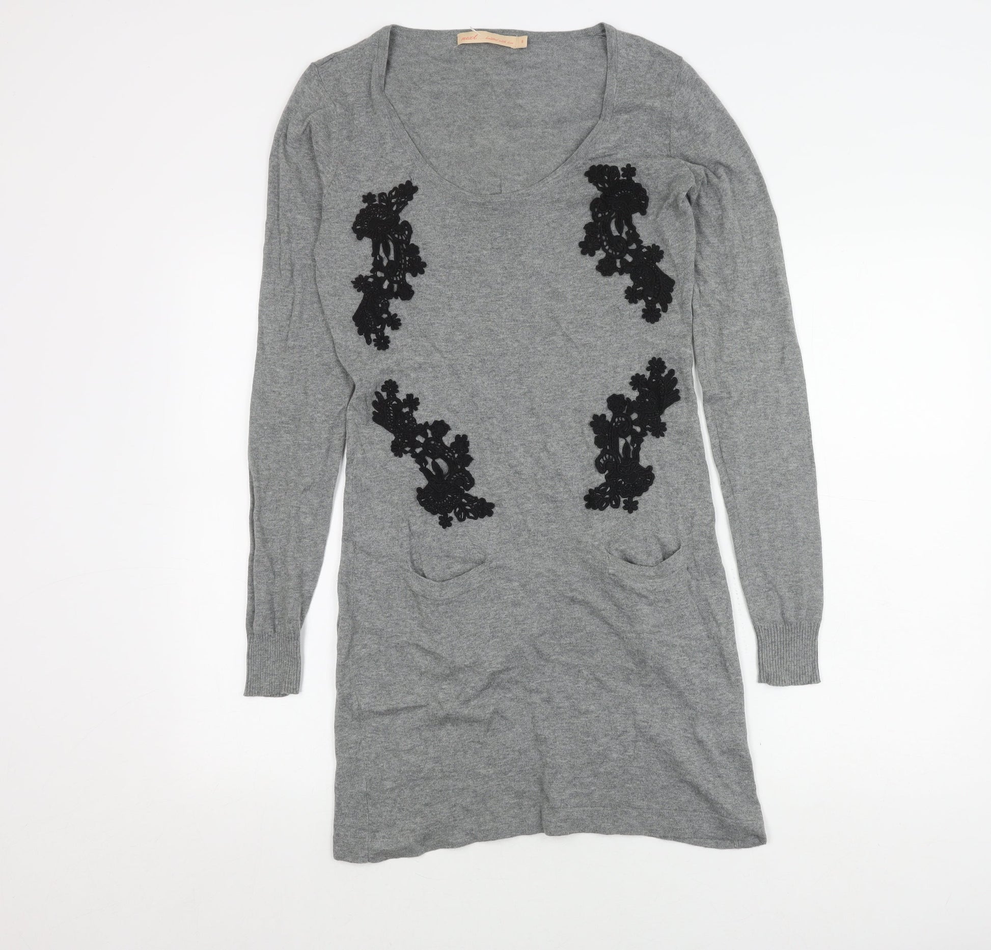 Next Women's Grey Jumper Dress Size 8 with Embroidery