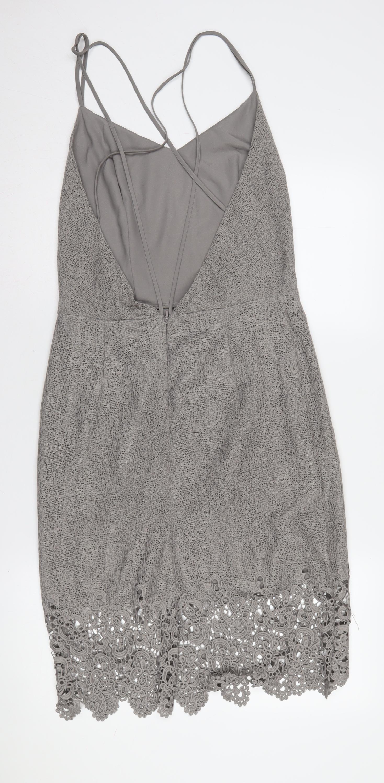 Next Women's Grey Lace Slip Dress Size 12 Tall