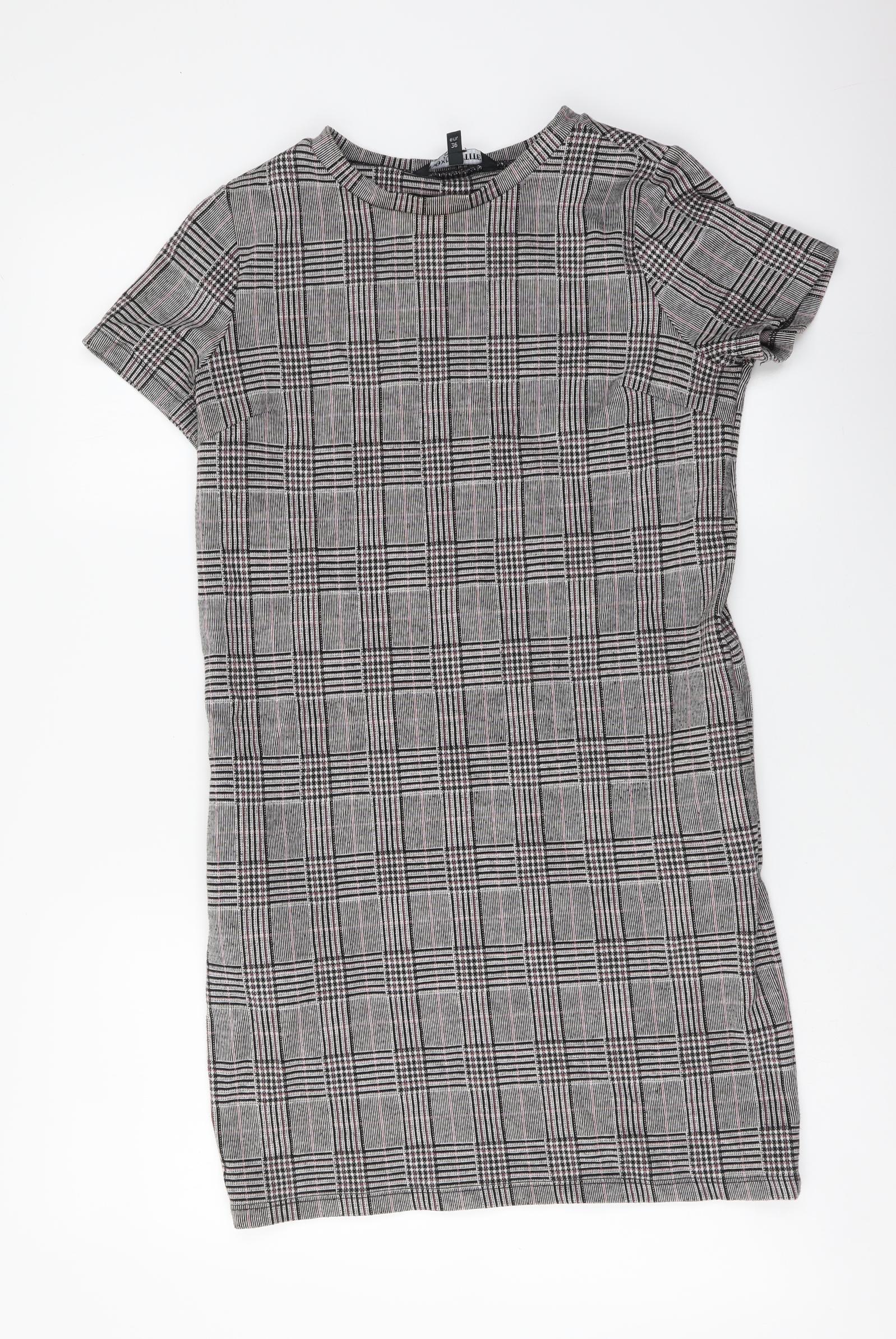NEXT Womens Grey Plaid Polyester Shift Size 8 Boat Neck Pullover