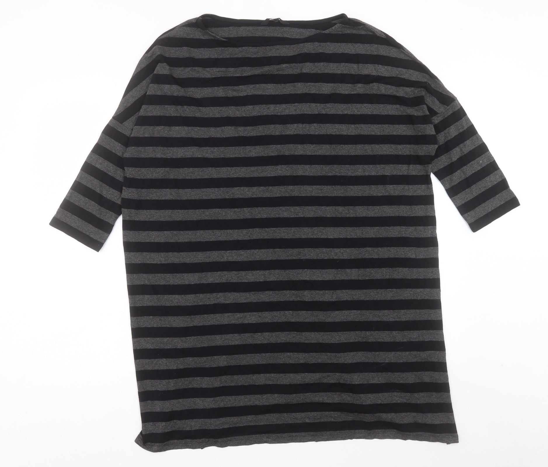 NEXT Womens Grey Striped Viscose A-Line Size 14 Boat Neck Pullover