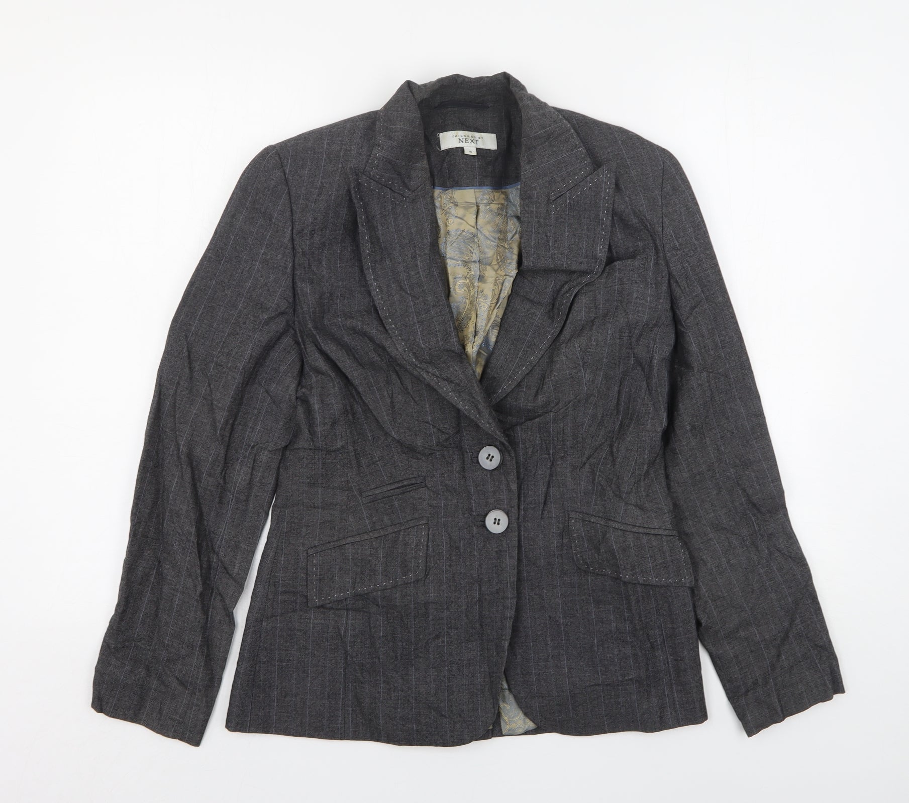 NEXT Womens Grey Striped Wool Jacket Suit Jacket Size 10