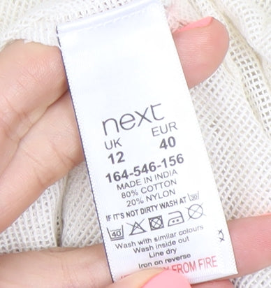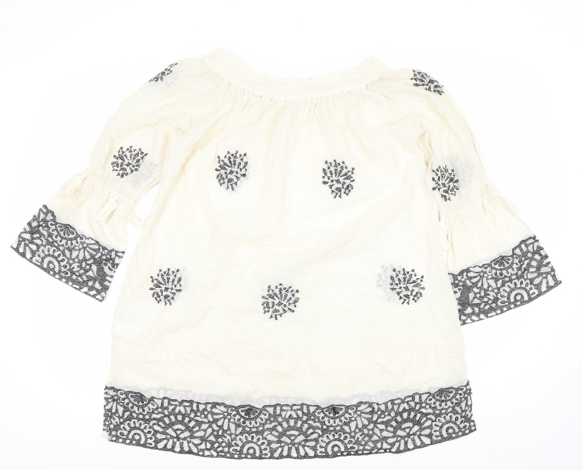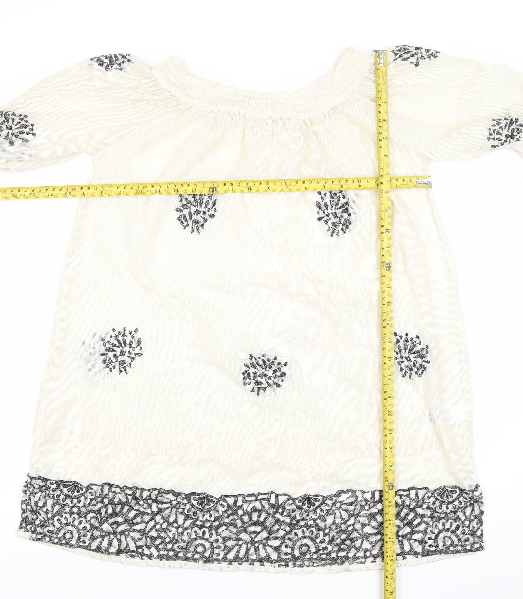 Next Womens Ivory Embroidered Cotton Shift Dress Size 12 Boho 3/4 Sleeve