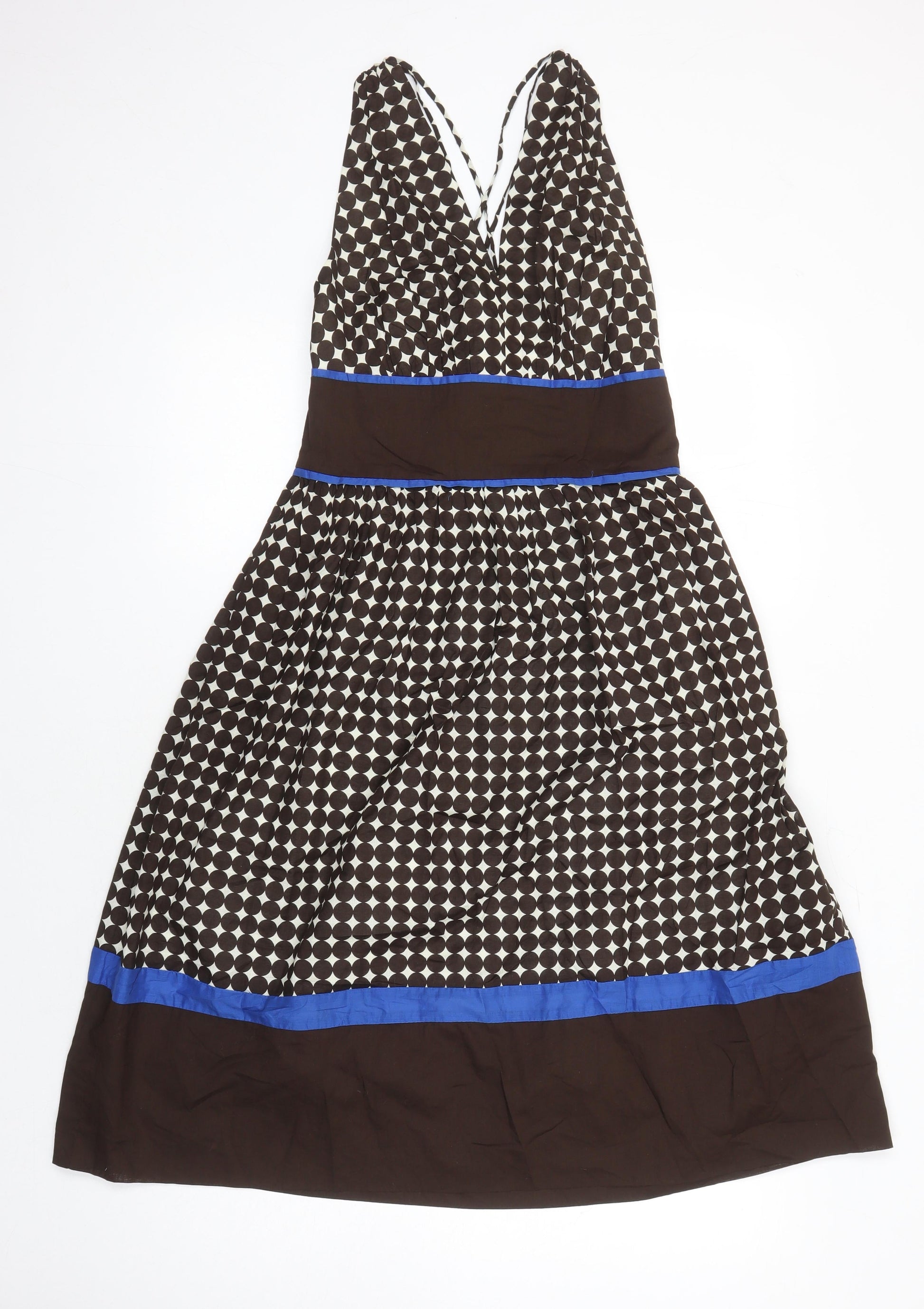 NEXT Womens Ivory Geometric Cotton A-Line Size 8 Sweetheart Zip