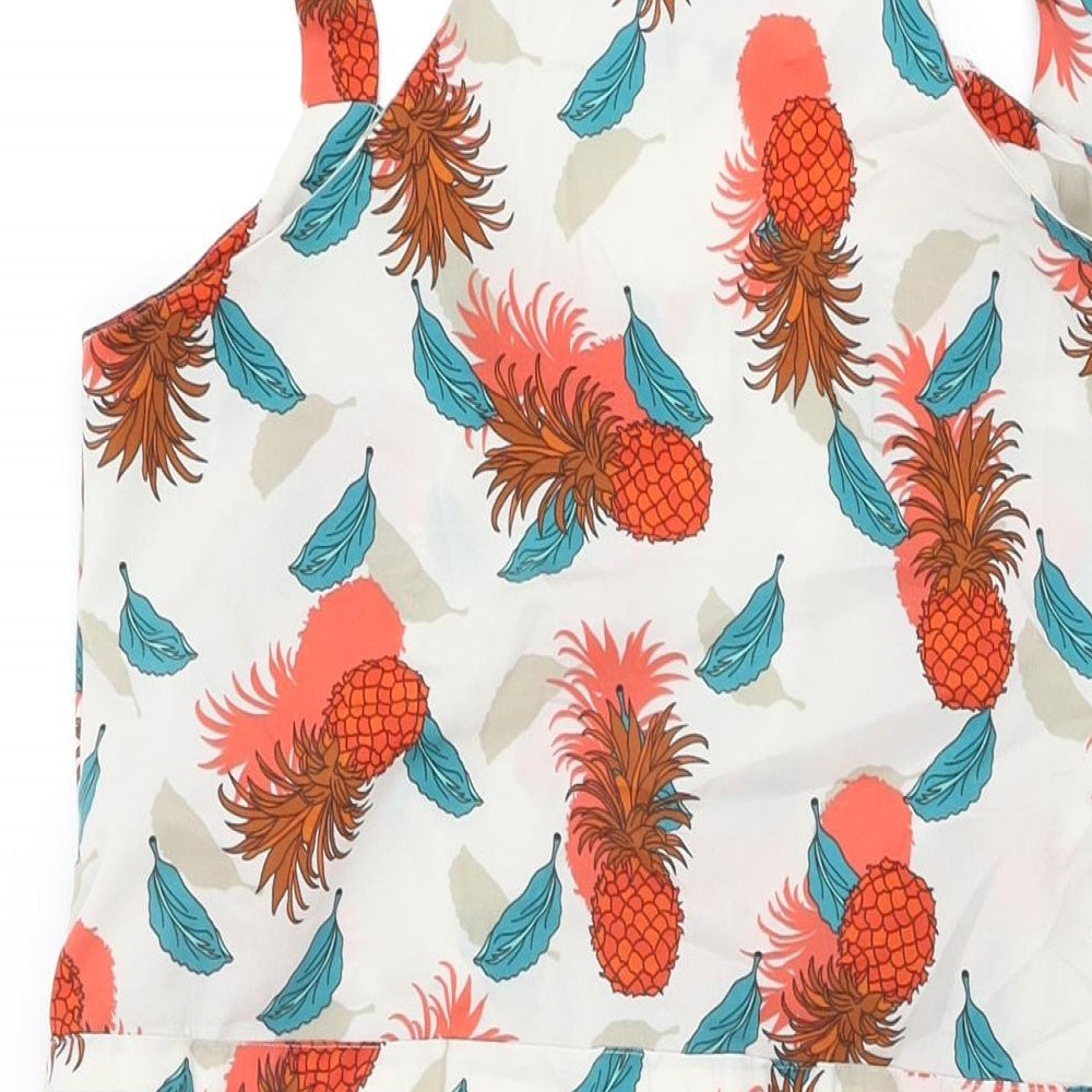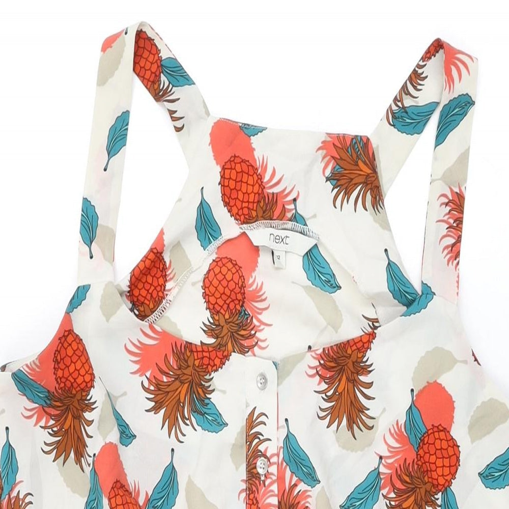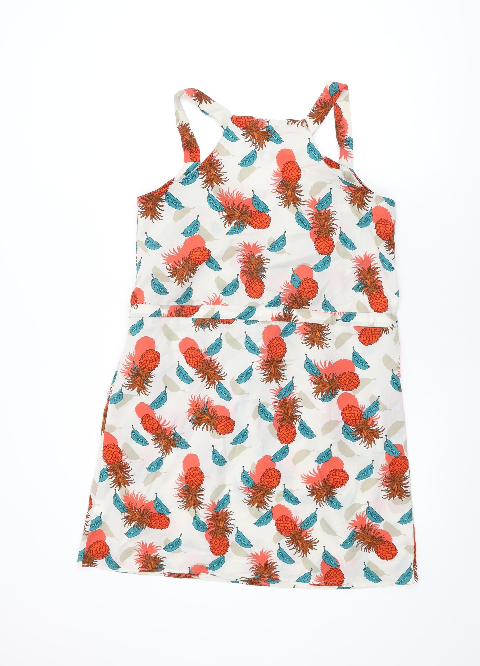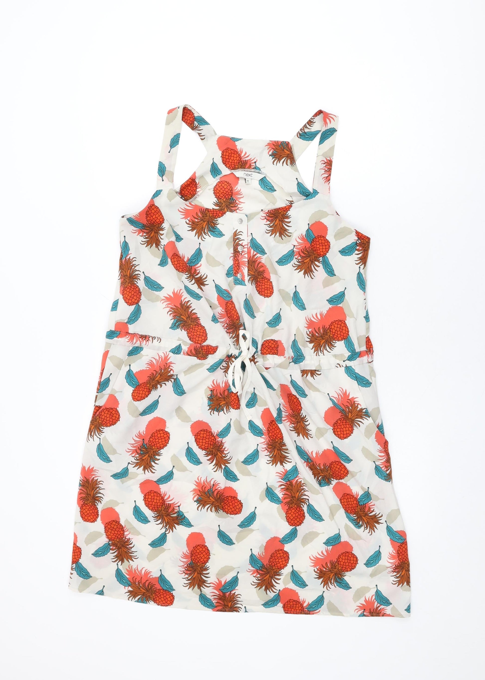 NEXT Womens Ivory Geometric Polyester Shift Size 12 Round Neck Drawstring