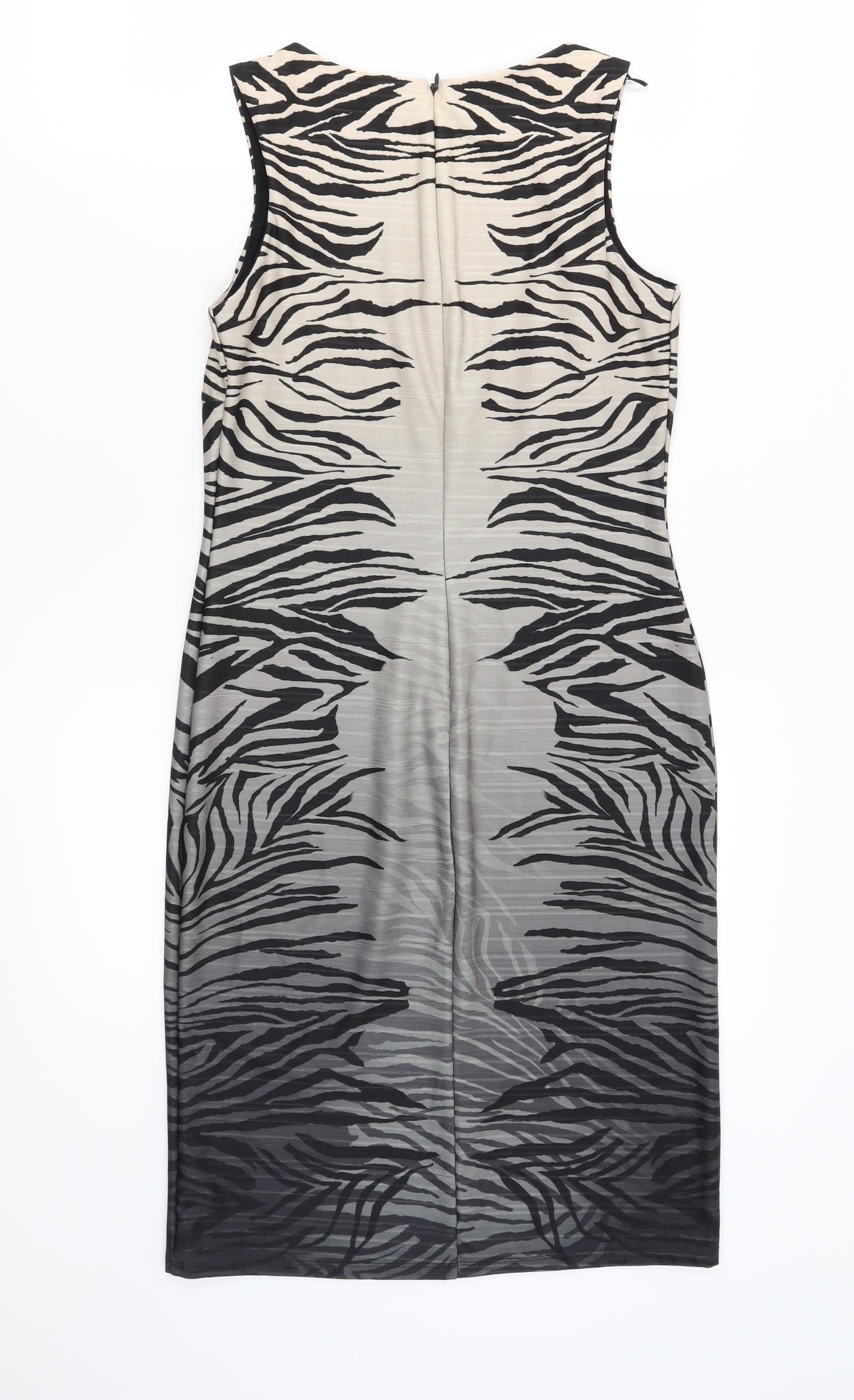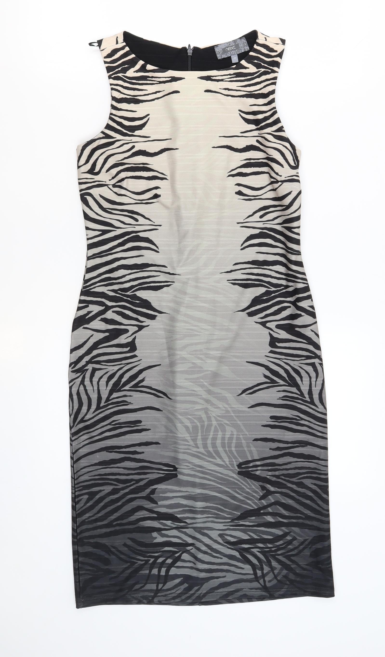 NEXT Womens Multicoloured Animal Print Polyester Shift Size 10 Crew Neck Zip - Gradient Zebra Print