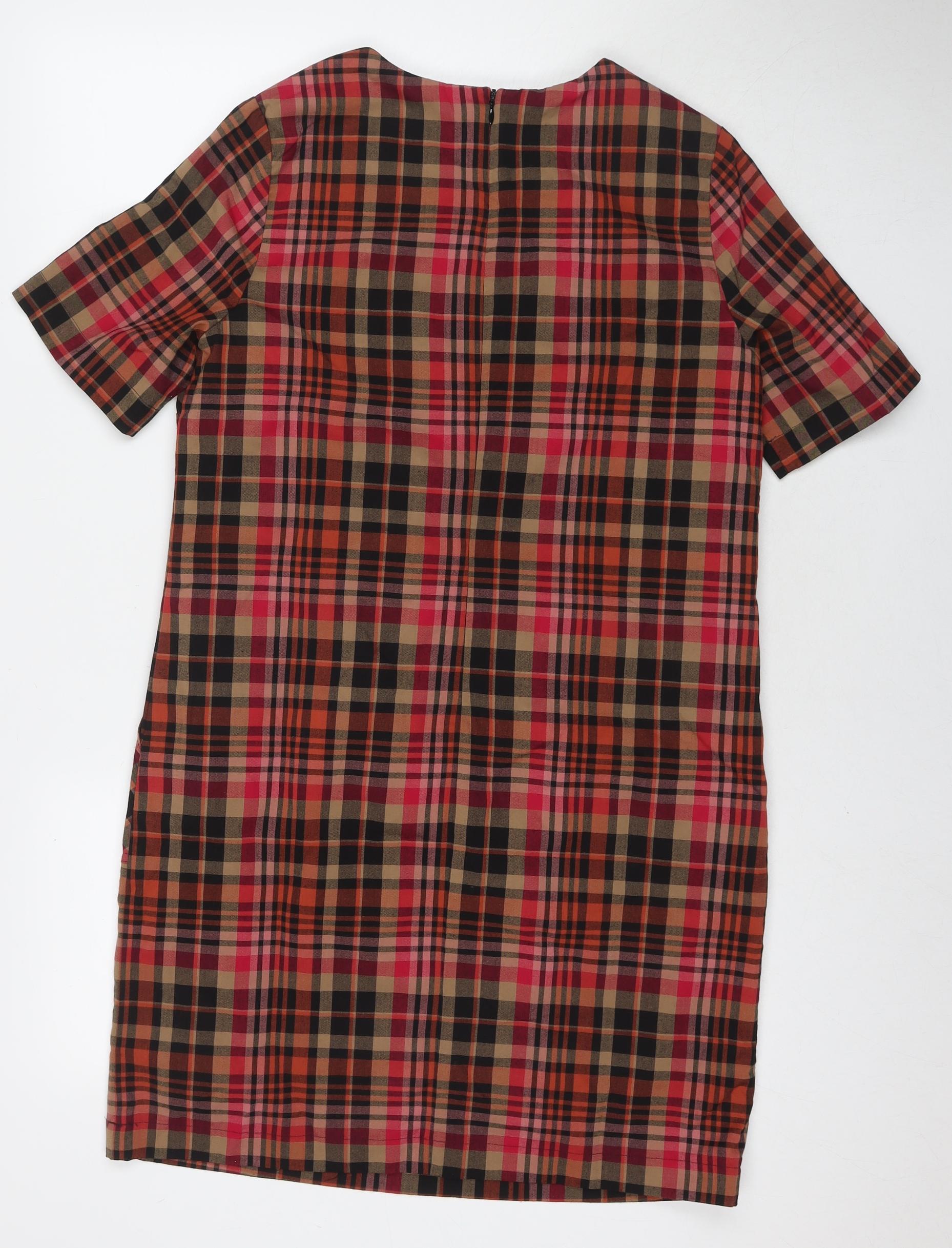 NEXT Womens Multicoloured Check Viscose A-Line Size 14 Round Neck Zip