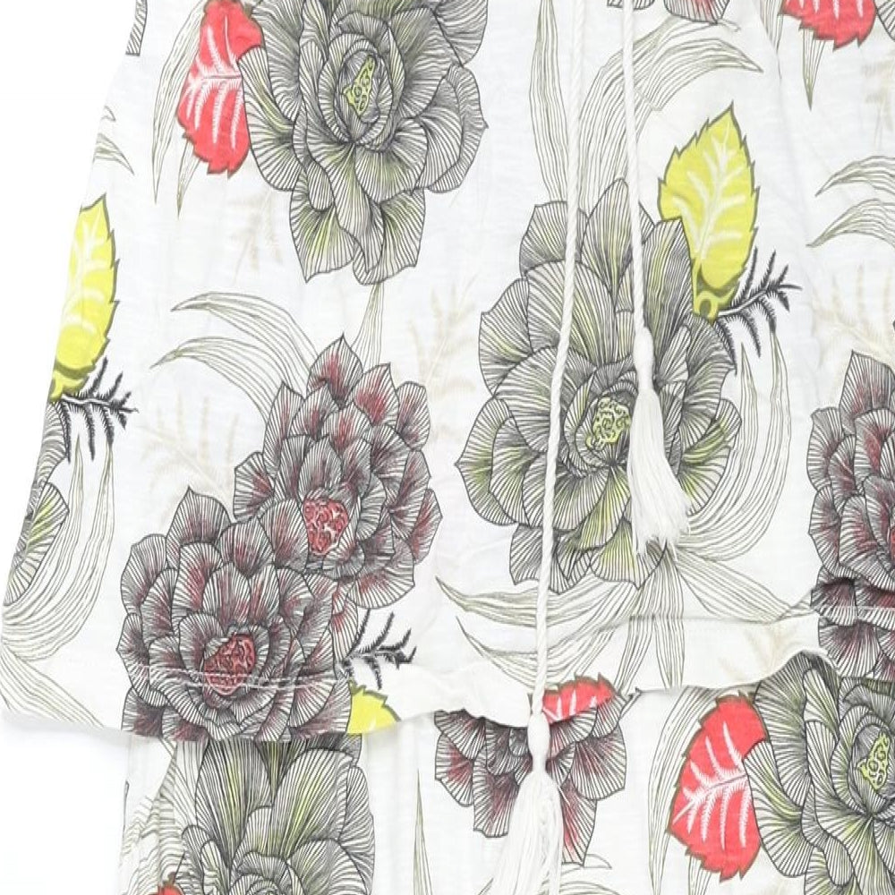 NEXT Womens Multicoloured Floral Cotton Maxi Size 14 Round Neck Tie - Side Slits Tassle