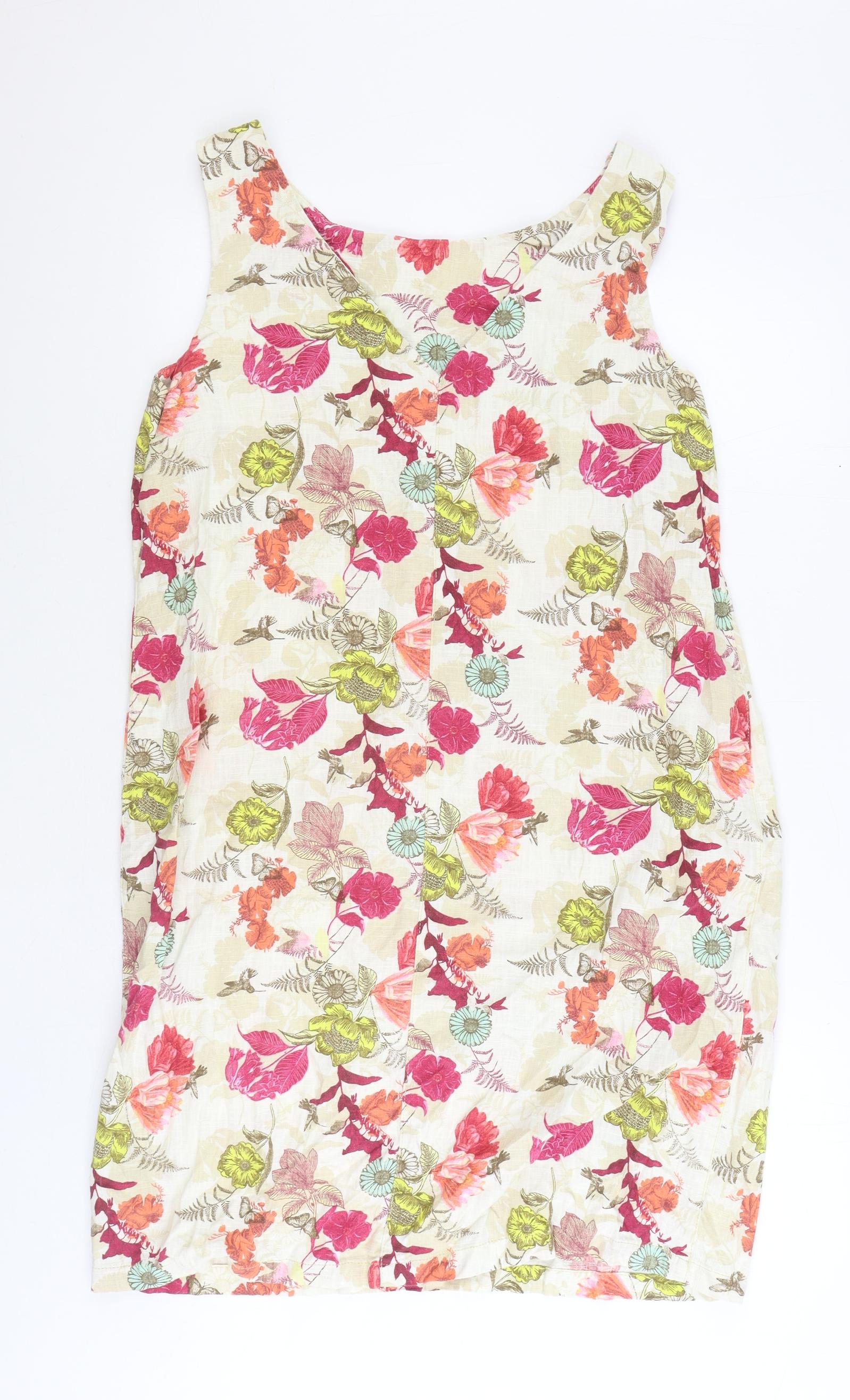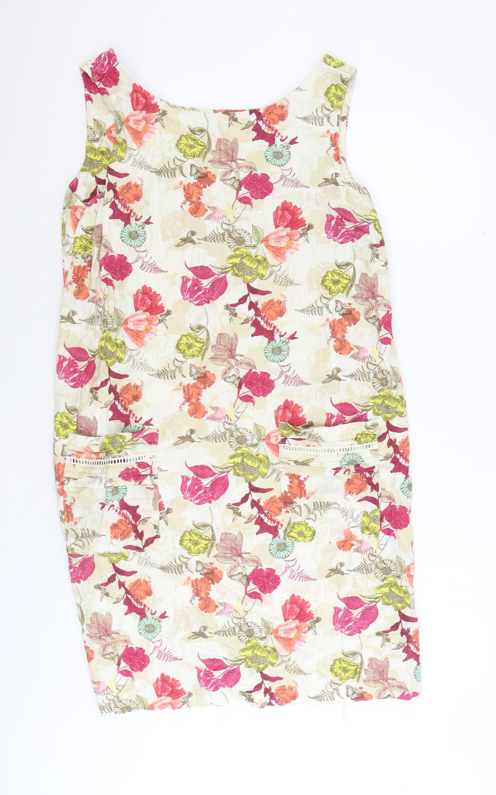 NEXT Womens Multicoloured Floral Linen Pencil Dress Size 16 Boat Neck Pullover