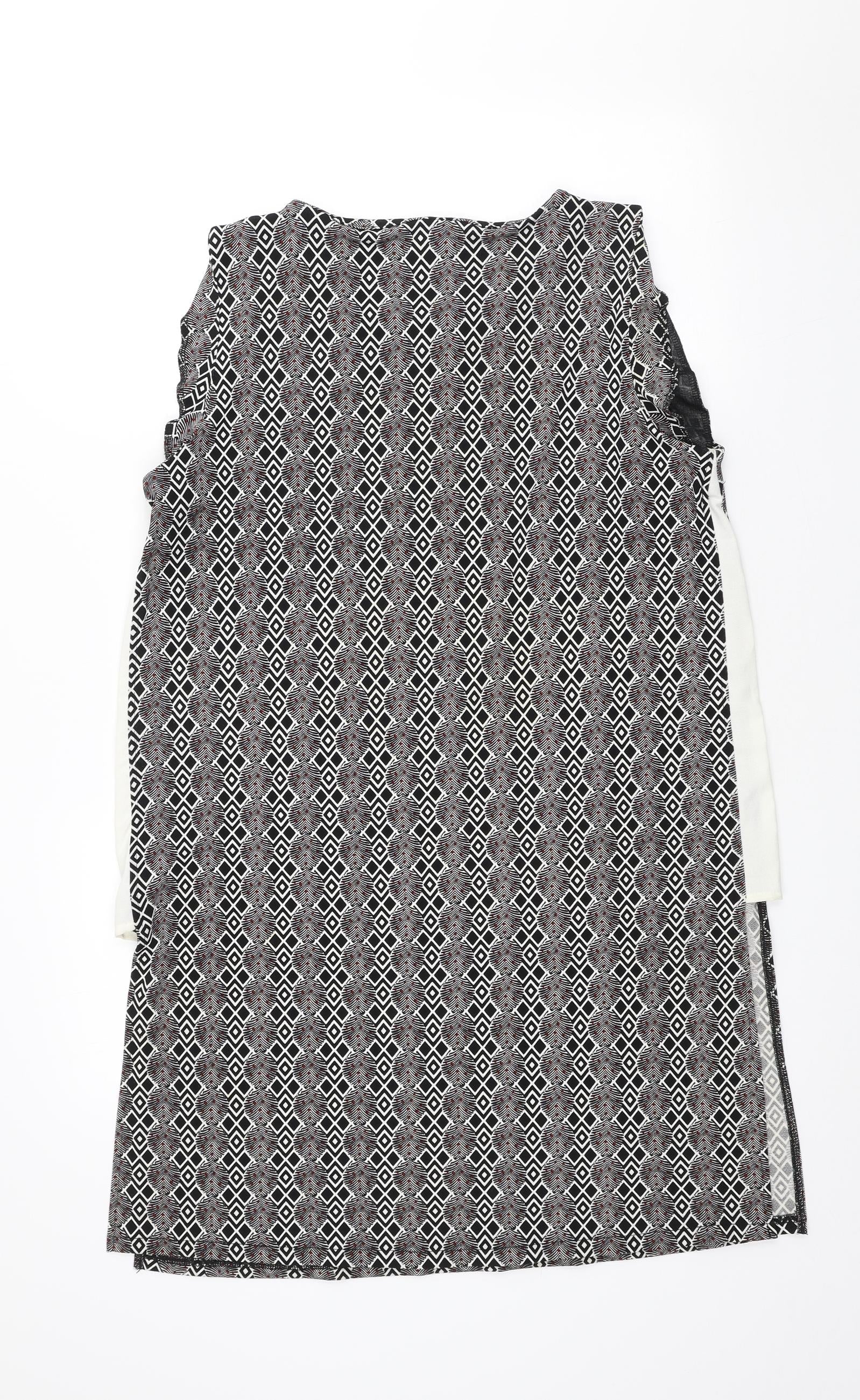 NEXT Womens Multicoloured Geometric Cotton Sheath Size 12 Scoop Neck